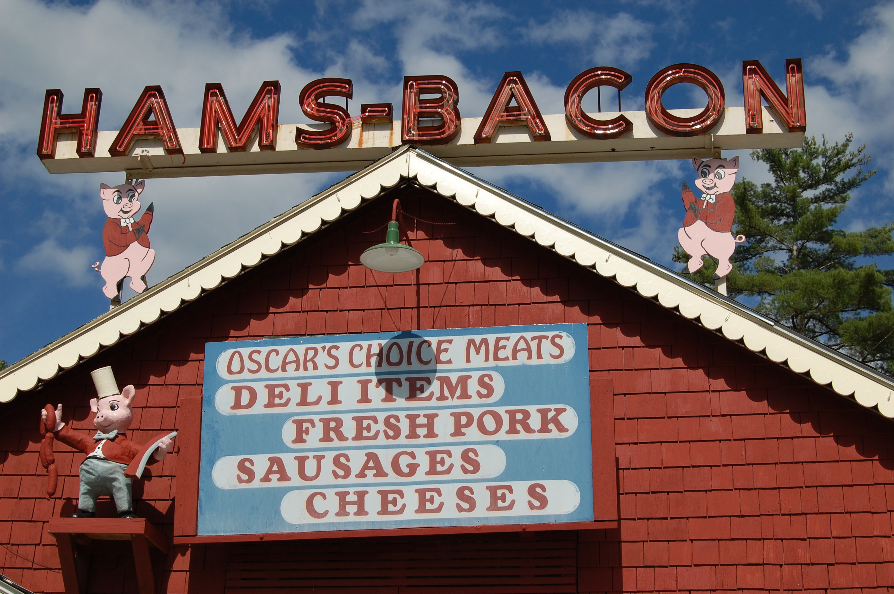 Got some amazing German sausages at this place. I love food signs that depict animals happily offering their body parts to humans. "Here! Please eat my sausages. They're WAY tasty!"