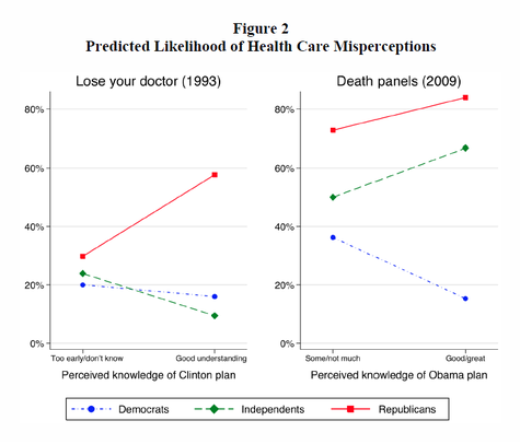 The Monkey Cage discusses a new paper by Brendan Nyhan. Nyhan finds that Republicans are more likely than Independents or Democrats to believe certain healthcare myths, including the belief that Obama will impose "death panels." Granny's chemo is going to cost too much too much. It's time to put her to sleep.