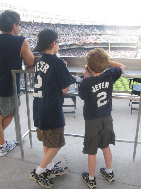 We had a lovely time even though the Yankees lost. The boys sat patiently for over four hours. Last year, Ian was a little freaked out by the elevation in our nose-bleeder seats. I had to walk around the stadium with him for a long time. This year, no problems at all. He still doesn't quite understand all the rules, but we're getting closer. In a few years, I can see him with a larger binder and a cup of Mountain Dew.