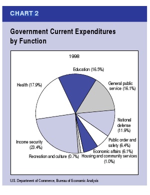 So, education is a nice sized slice of the pie, but there are bigger slices in there. Income security means pensions, welfare, and social security — pensions are huge. Health is medicare and medicaid. So, we spend much, much more for older people than we do for schools.
