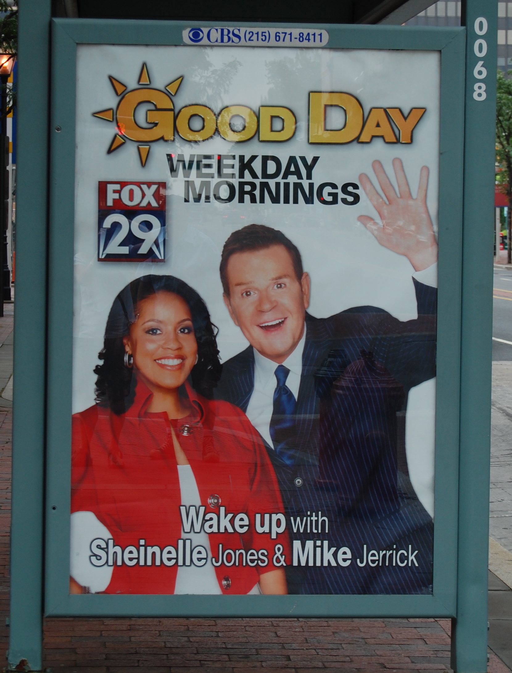 As we were walking around Philadelphia this weekend, I couldn't help taking a picture of an ad for the local news show. I've never seen the show, but the formula is so predictable. Sheinelle reads the news about fires, rapes, abductions, and mistakes made by social workers and other government employees. Mike's job is to report the humorous and the weird stories. He throws in goofy jokes, and Sheinelle rolls her eyes at him.