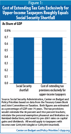 They point out that the shortfall in social security is roughly equal to the amount of revenue that we lose by extending tax provisions to upper-income taxpayers.