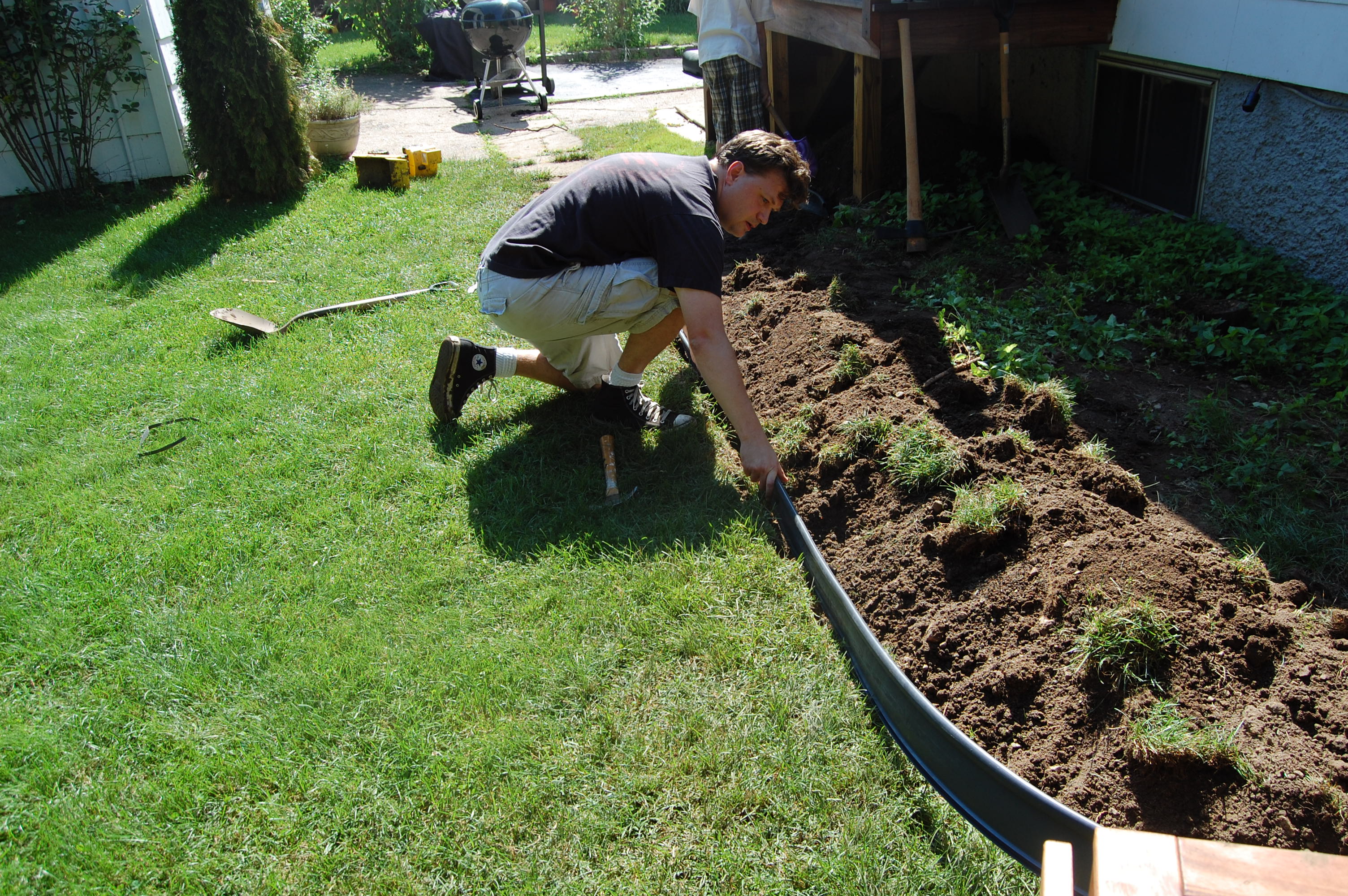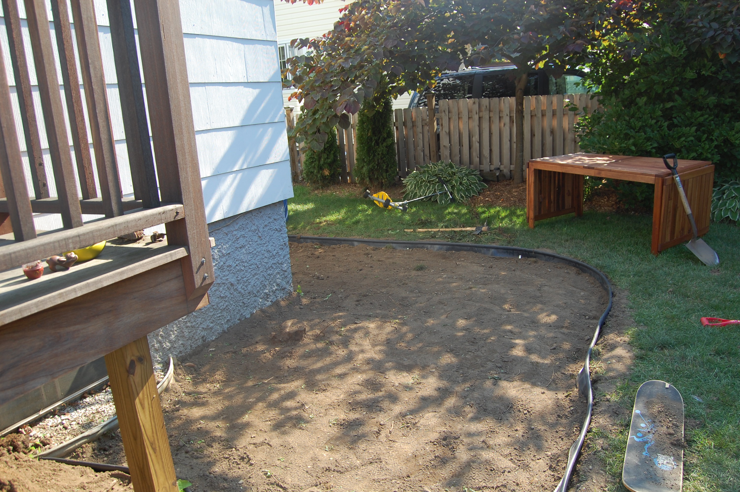 After the border was put in, we dug eight inches of soil out of the entire area. It's actually a lot of dirt. Luckily, the neighbors needed it.