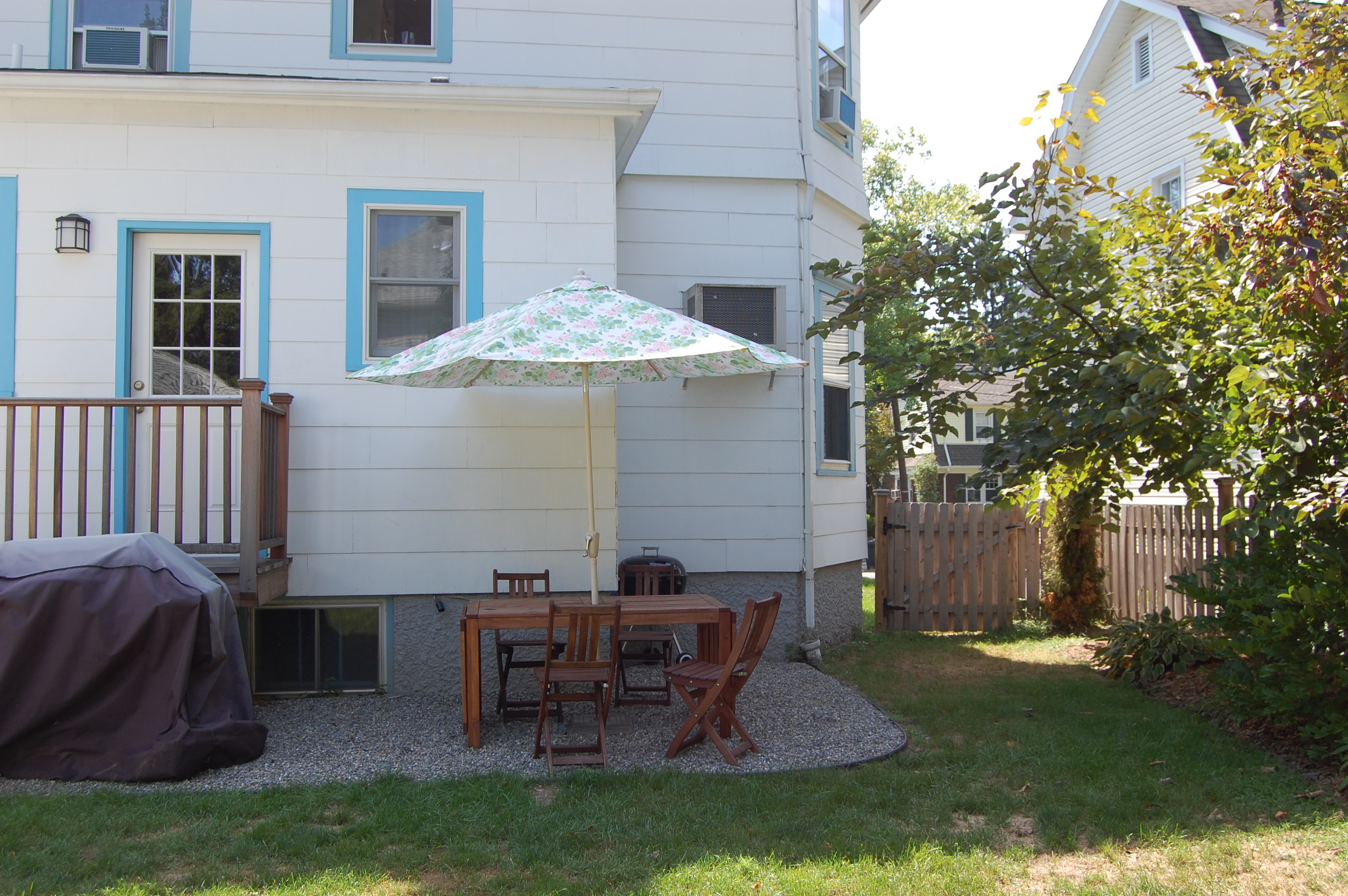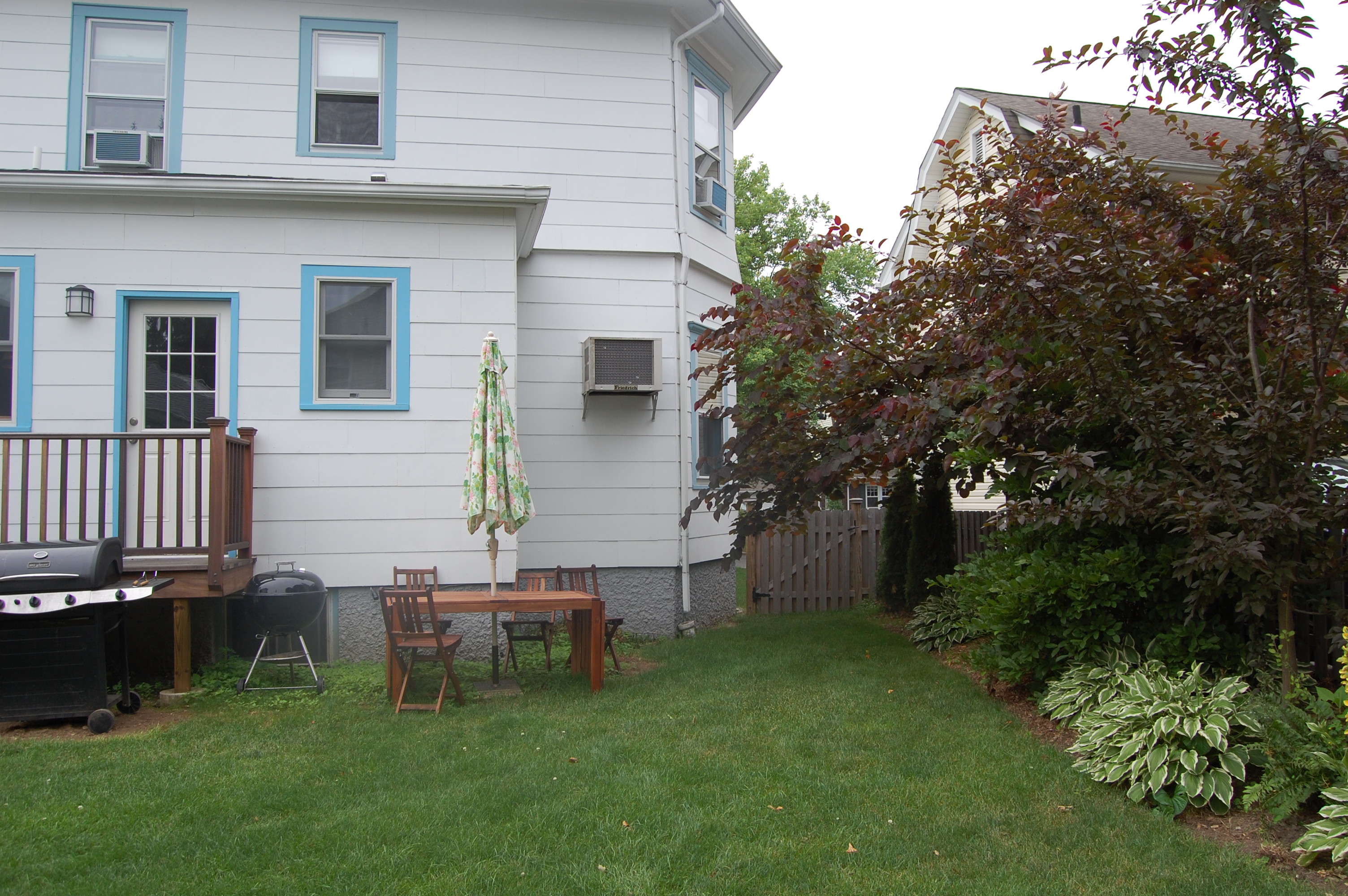 Here's the backyard before we started work. Jonah is begrudgingly sitting for the picture. OK, Jonah, you can go play now.