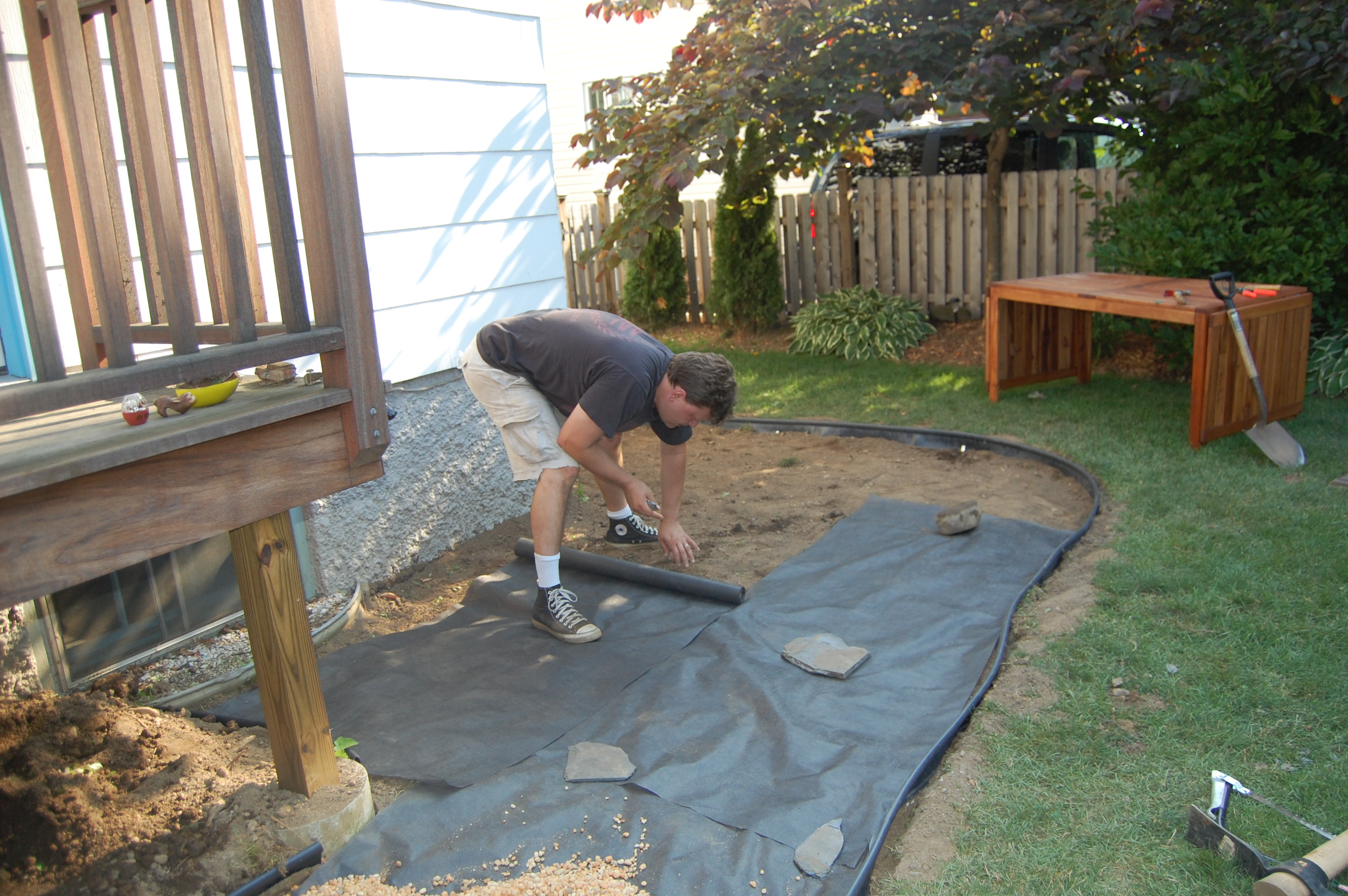 Then we mapped out where we wanted the patio to go. We dug down about eight inches and surround the boarder with some rubber stuff. I think "rubber stuff" is the technical term.