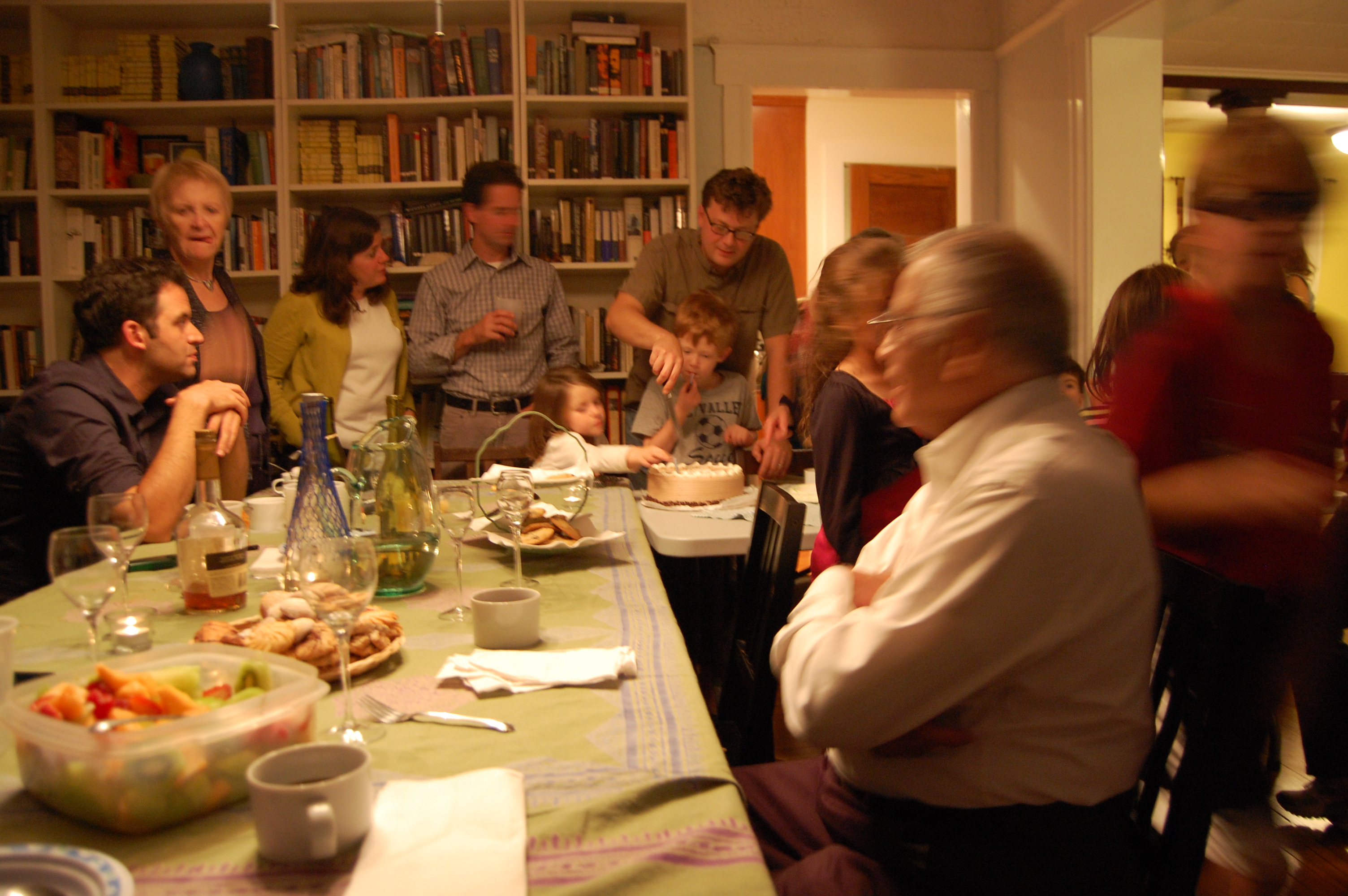This weekend, my family in Florida came up for a visit. We squeezed 22 people in our house and somehow found a chair for everyone. Do you like my table cloth? It's a bedsheet from Urban Outfitters.