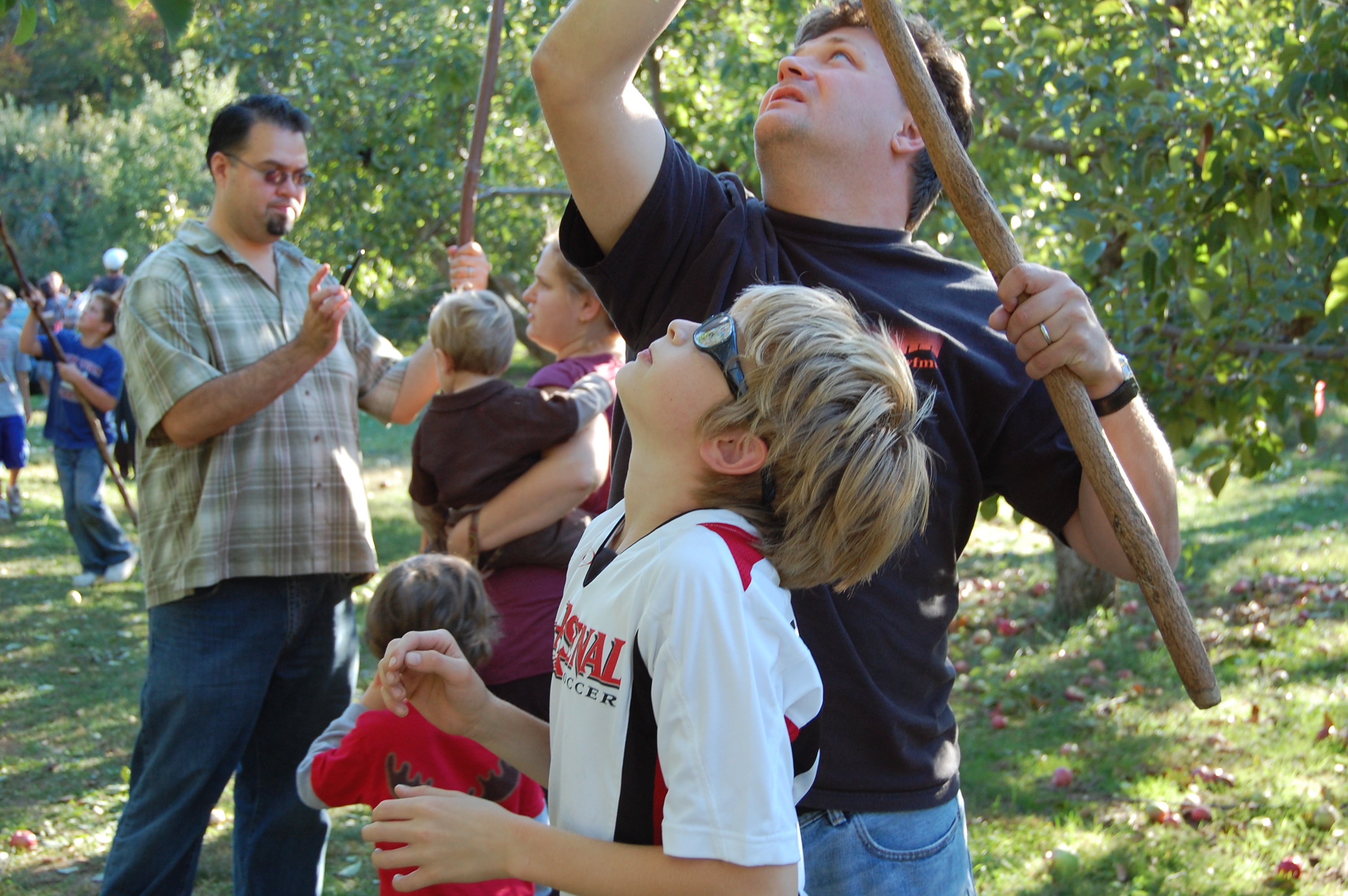 After Jonah spied the best, most wonderful, most perfect apple in their entire orchard, he instructed Steve to snap it up with his apple picking stick. He's prepared to catch it, if need be.