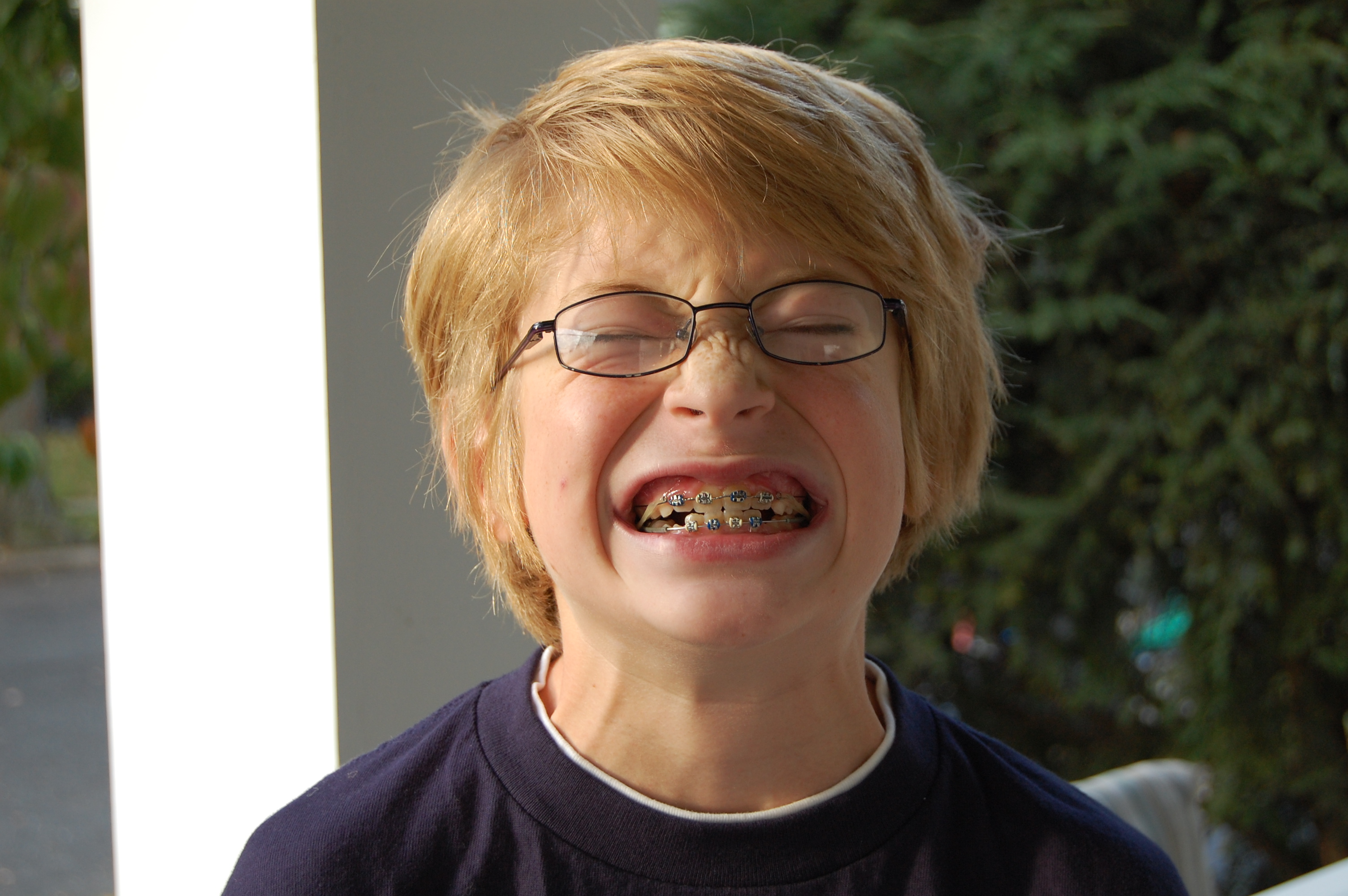 On Monday, I took Jonah to the orthodontist to get his braces removed. The before photo: