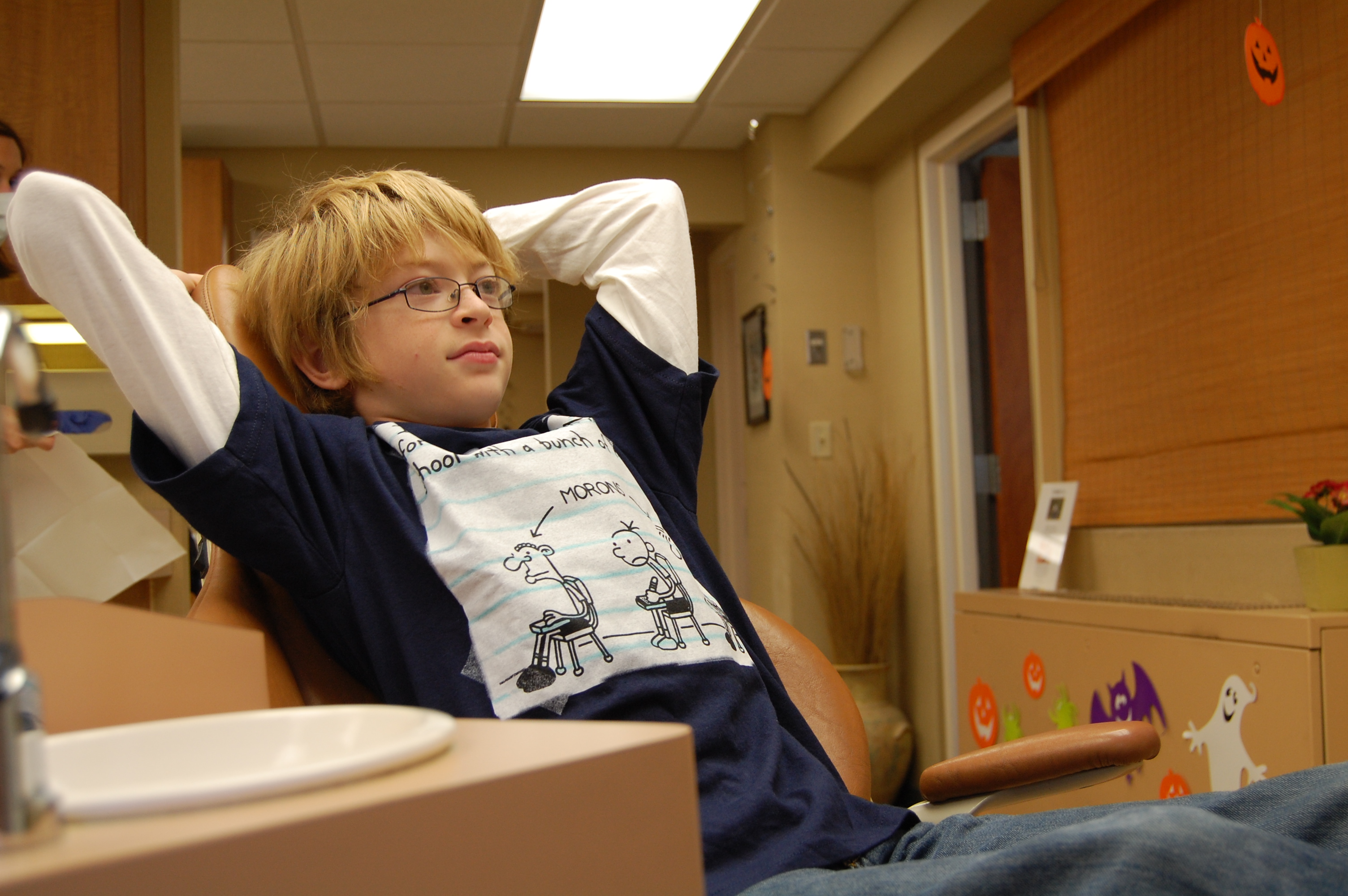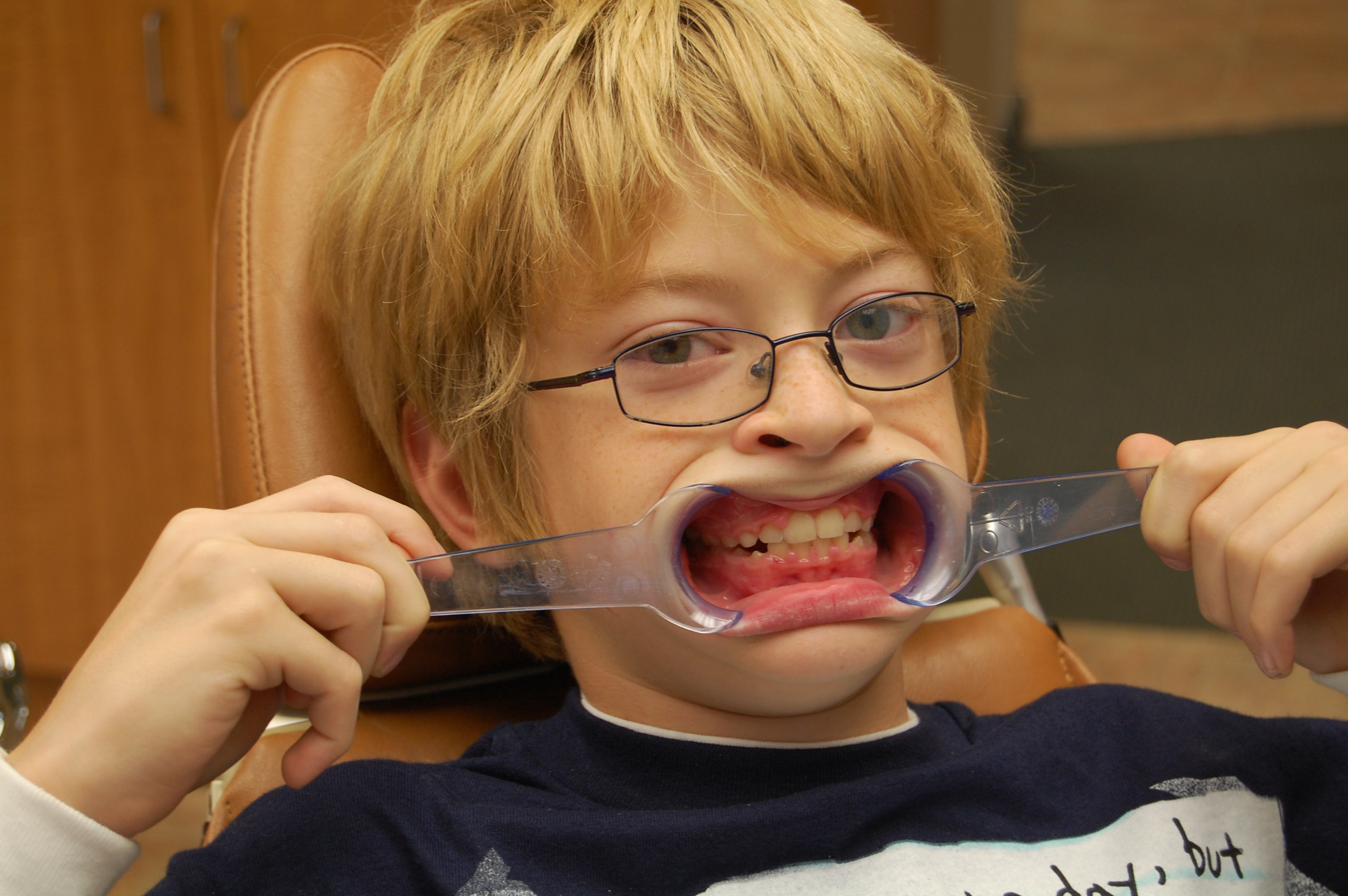 They hygenist made him post for silly pictures. These photos will be whipped out on prom night for sure.