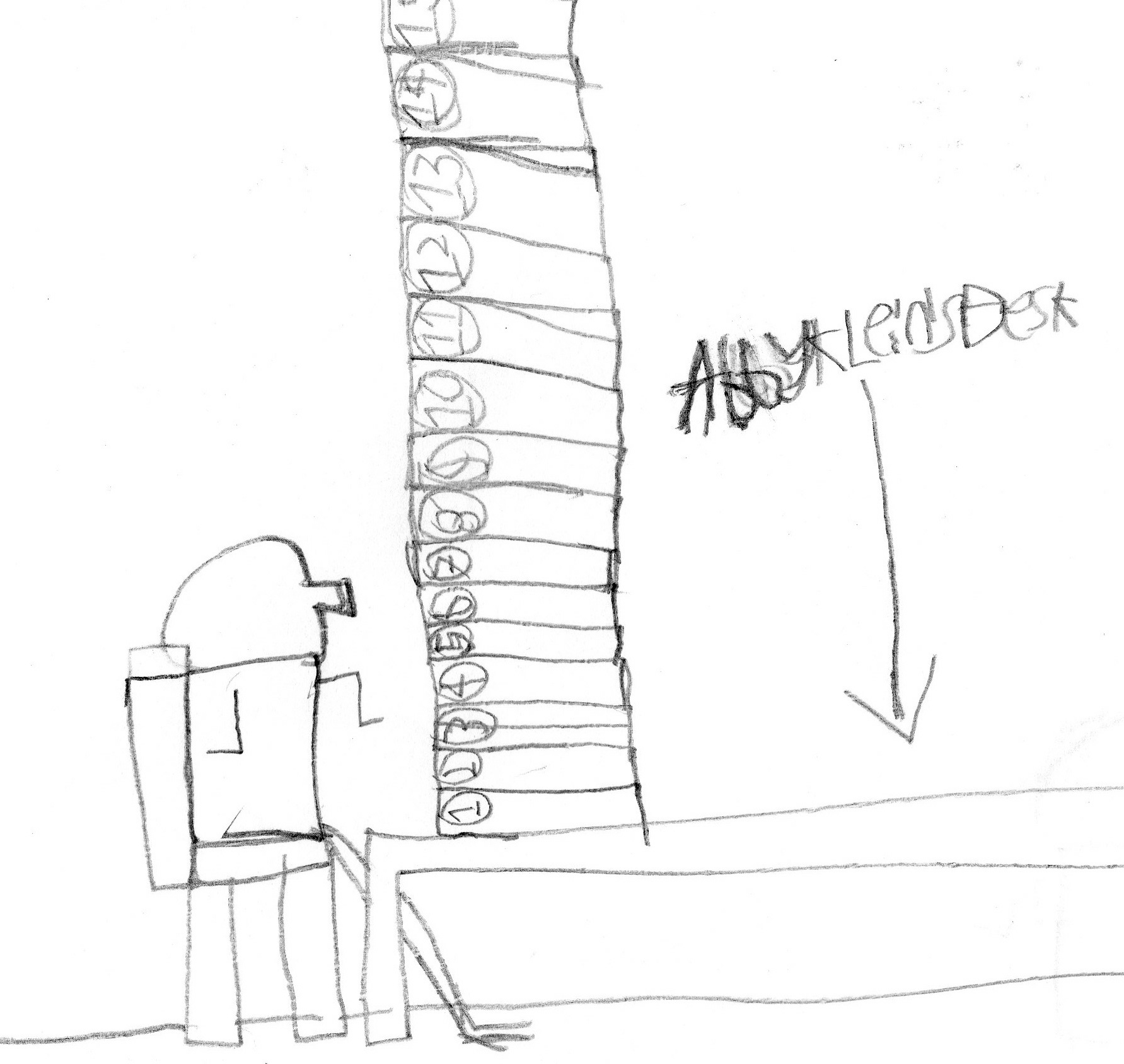 The he drew a picture of Abby Klein sitting at her desk and writing the books in the correct order.
