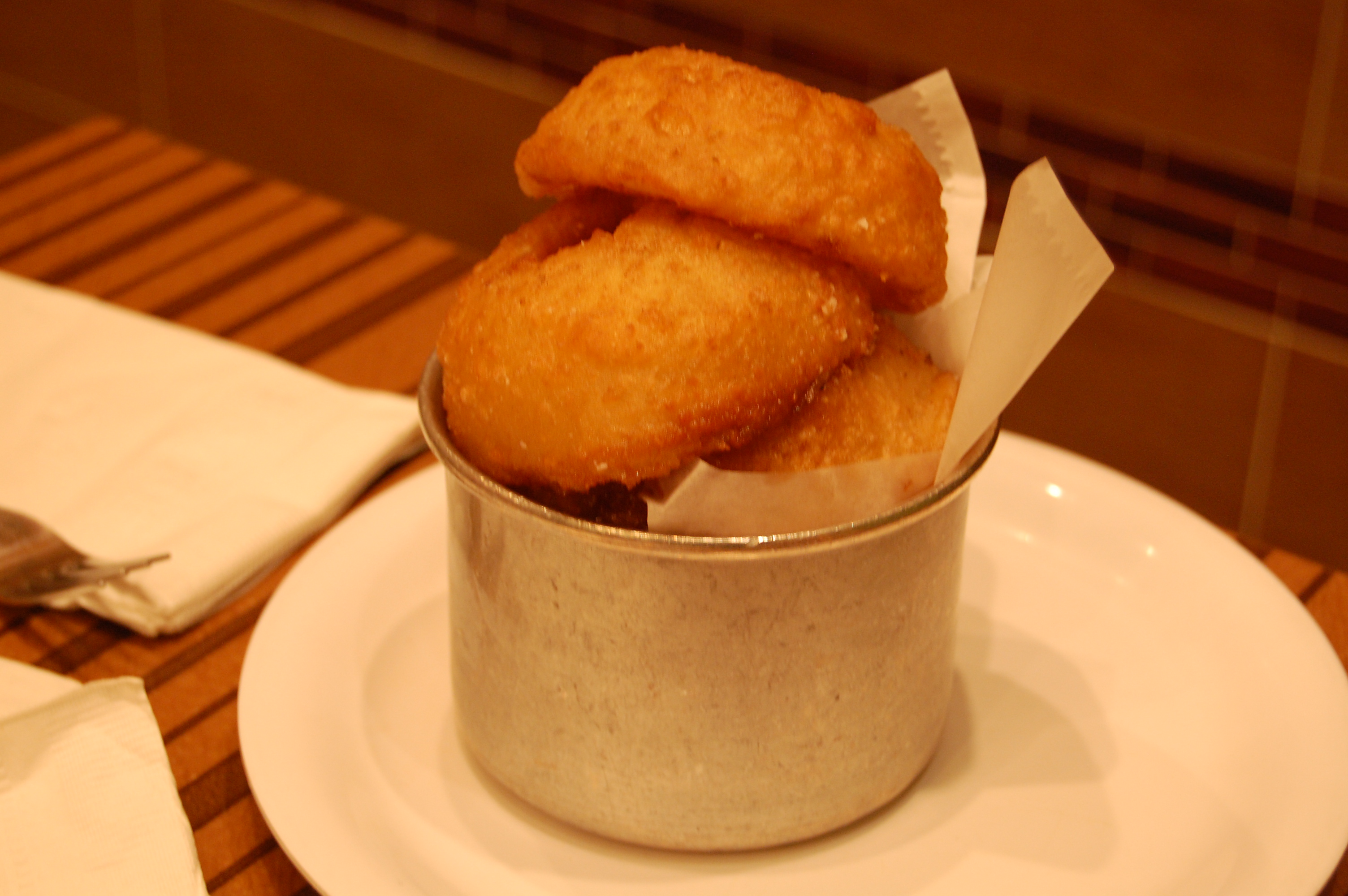 We had ridiculously excellent burgers at Bobby's Burger Palace on Friday night. I picked up Steve by the side of the highway after work, and we went to Target to buy gifts. Afterwards, we walked to Bobby Flay's new fastfood venture. It was very good — hot peppers, reasonable price, retro decor. And check out those slabs of onion rings! Just don't kiss me.