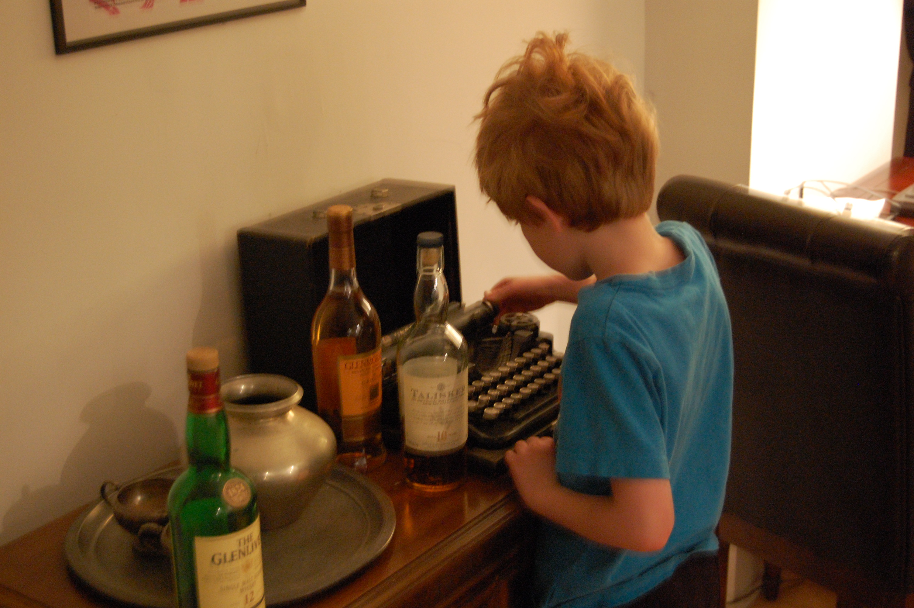 On Saturday night, we went to my cousin's Jeff apartment on 111st Street. I took a bunch of blurry pictures, because I'm allergic to the flash. In every picture, there's at least one kid in the background playing with Jeff's old Underwood typewriter. What's this ribbon for?