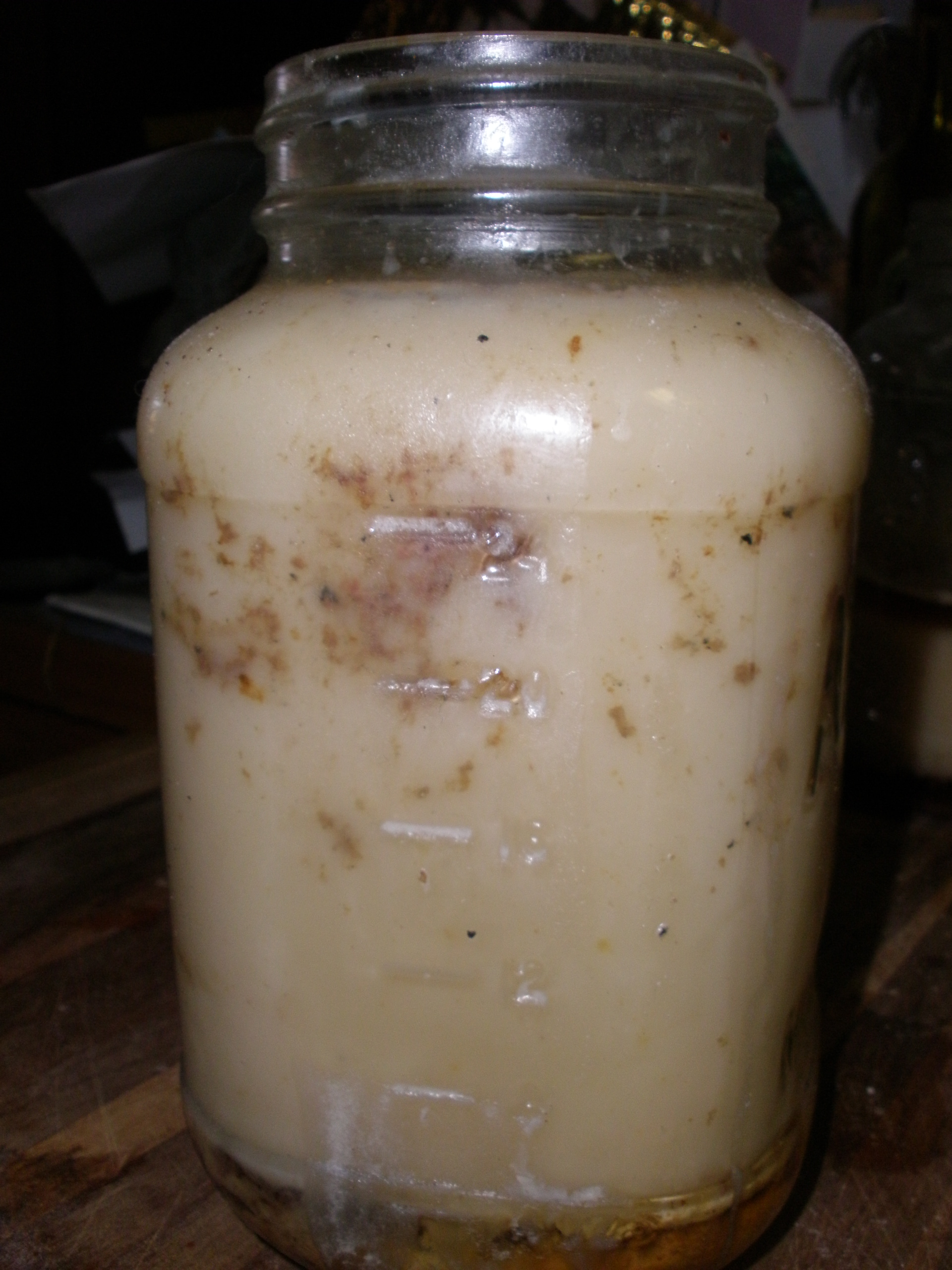But anyways, I have a late disgusting food entry, except it is actually a disgusting beverage, so maybe that’s why it slipped my mind before. In his mid 80s, my grandfather read that drinking a glass of red wine every night was good for your heart. Although he hadn’t been a wine drinker, he decided to take it up. He bought the largest (and my guess, cheapest) jug of red wine he could find, and then every night before bed, he would pour a juice glass half full with red wine, and then fill the other half up with milk. The mixture was a kind of sickening pale burgundy color, and the milk slightly curdled. In high school when I lived with them for a bit he offered to fix me a glass too, but I declined the offer.
