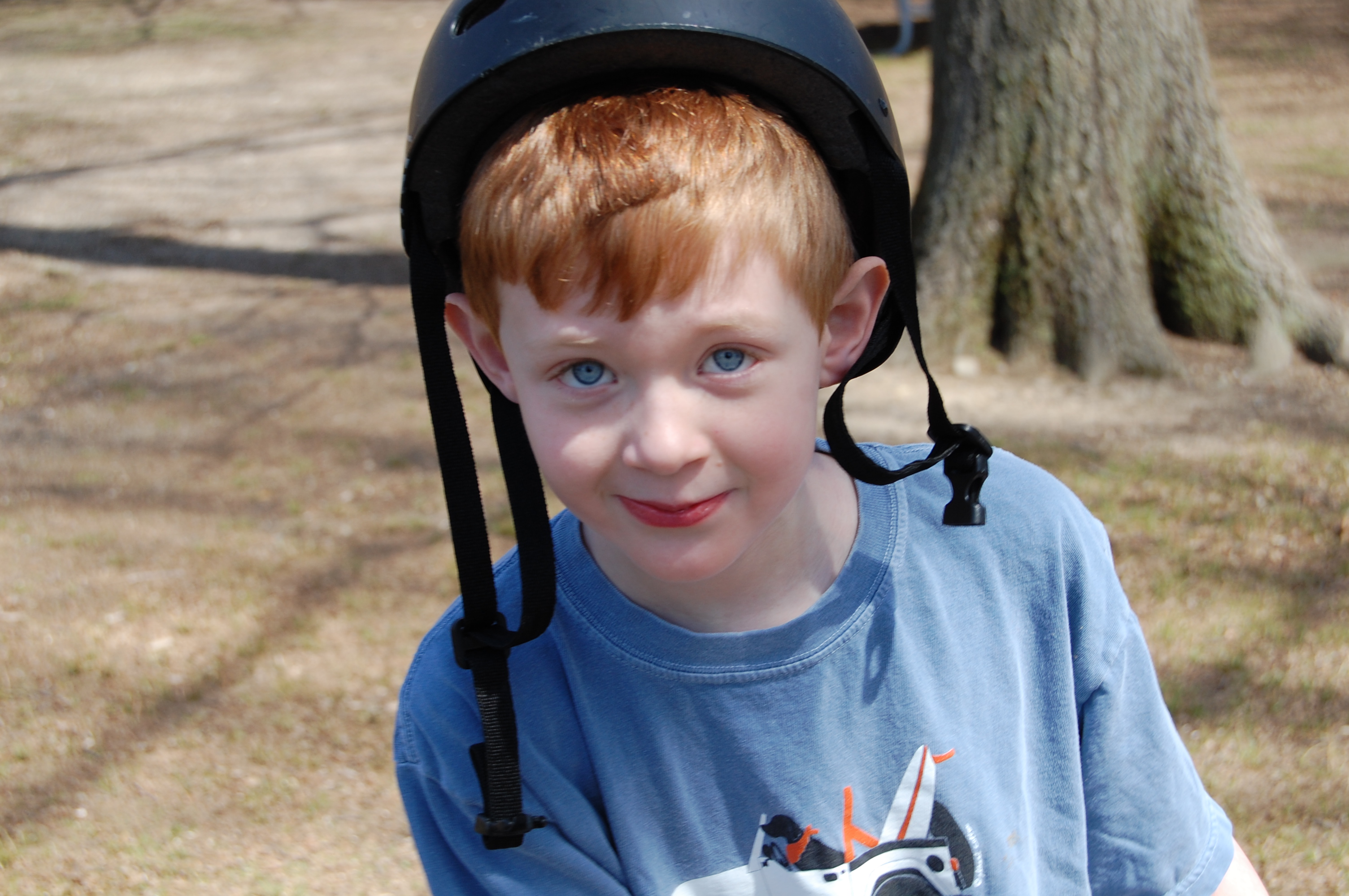 Yesterday, I took Ian to a local park. He rode his bike around, and I roller bladed. No, he never hooked up the strap on his bike helmet. No judging, please.