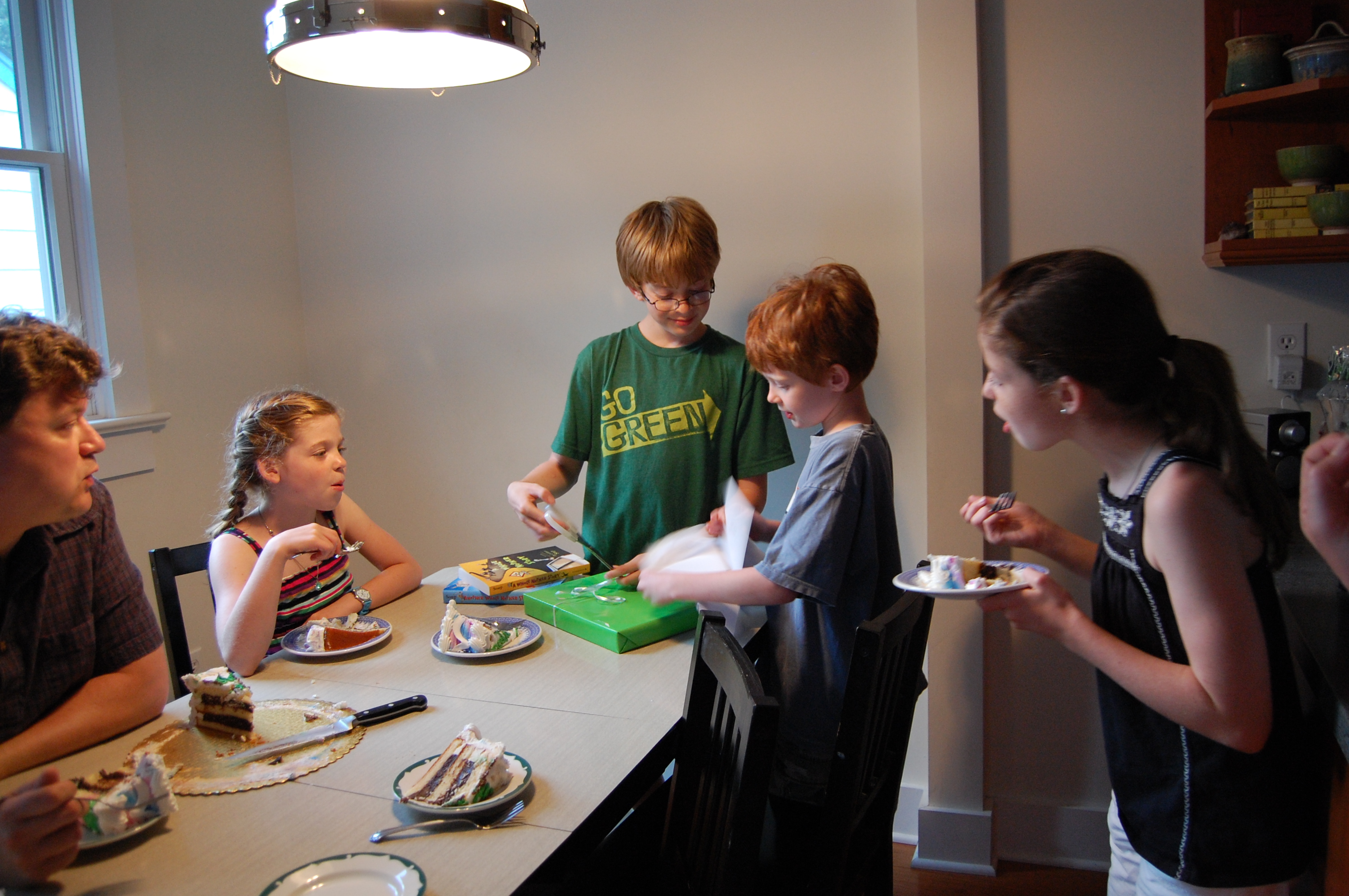 Sorting through the pictures on my computer, it's clear that the vast majority of my pictures are taken during birthday parties. There's nothing wrong with birthday party pictures. This one shows how comfortable my boys are with their cousins. There's the commentary from the girls on Jonah's presents. Jonah is completely laid back, as his little brother opens his gifts for him. Everybody is chowing down on chocolate pudding cake from Shop Rite. Still, there a lot of living that happens between birthday. I have to remember to take more pictures.