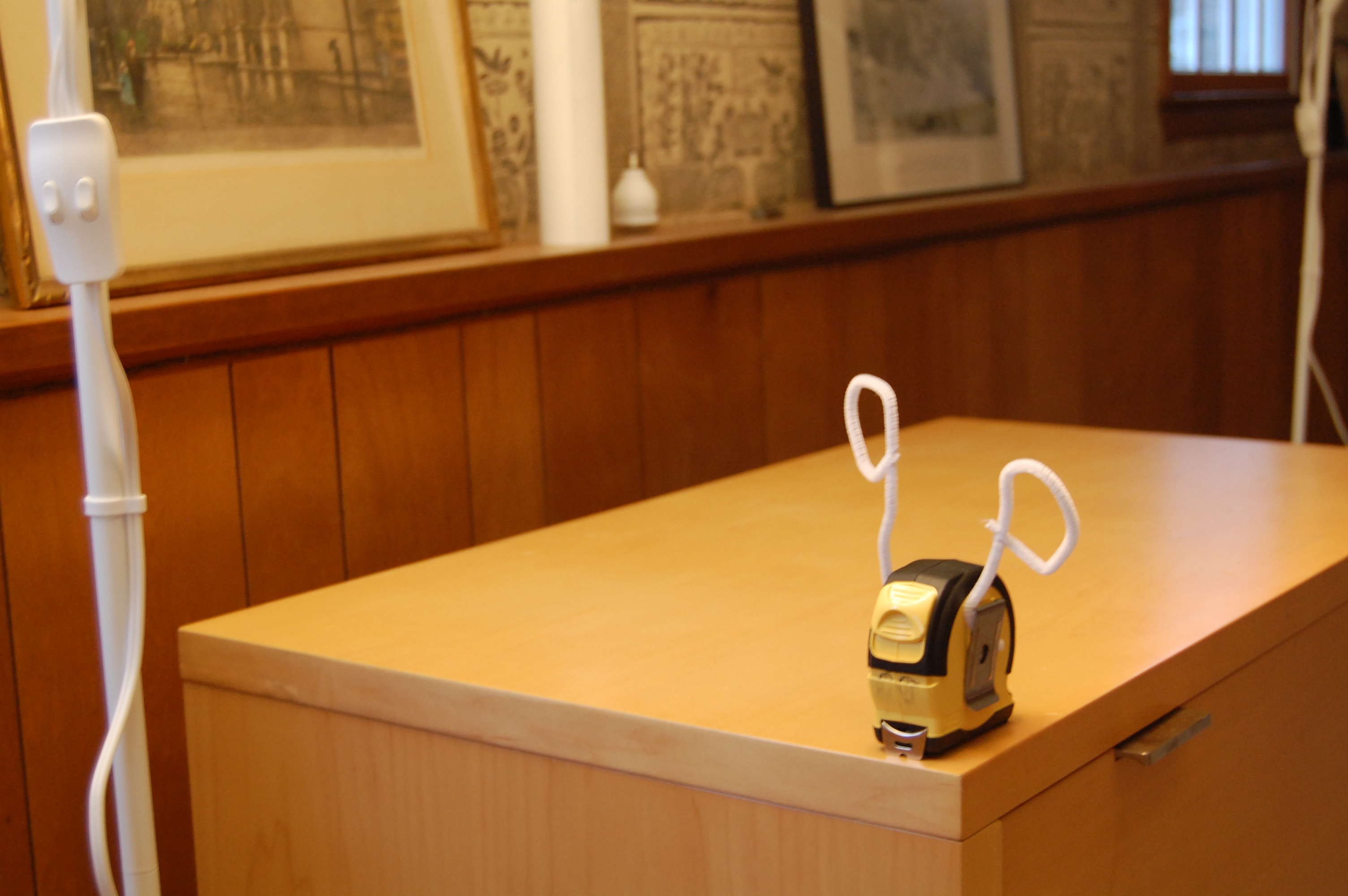Ian must have crafted this out of measuring tape and pipe cleaners last night. It's not unsual for us to find little presents like this around our house.