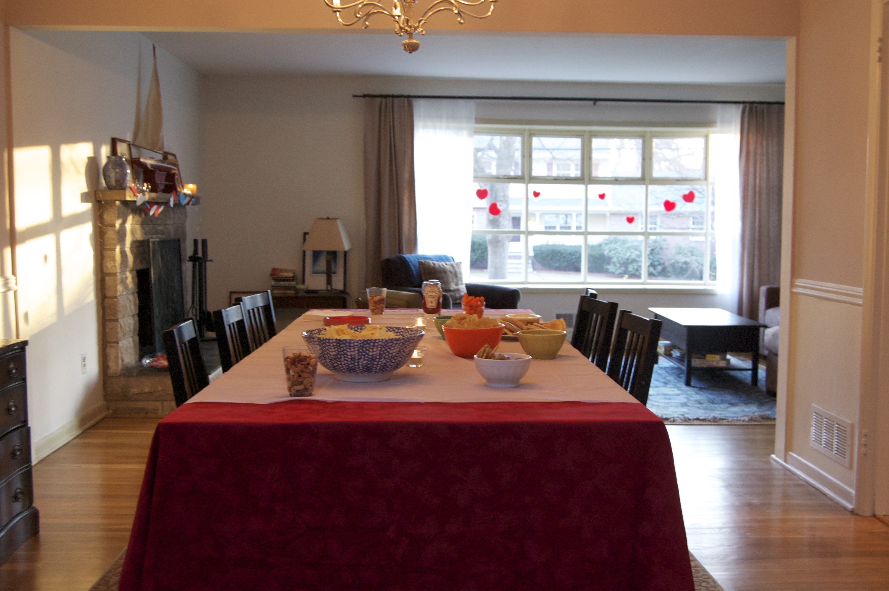 The mid-century layout of this house is fabulous for parties. Which reminds me. I have to make a shopping list for Saturday's BBQ in March party.