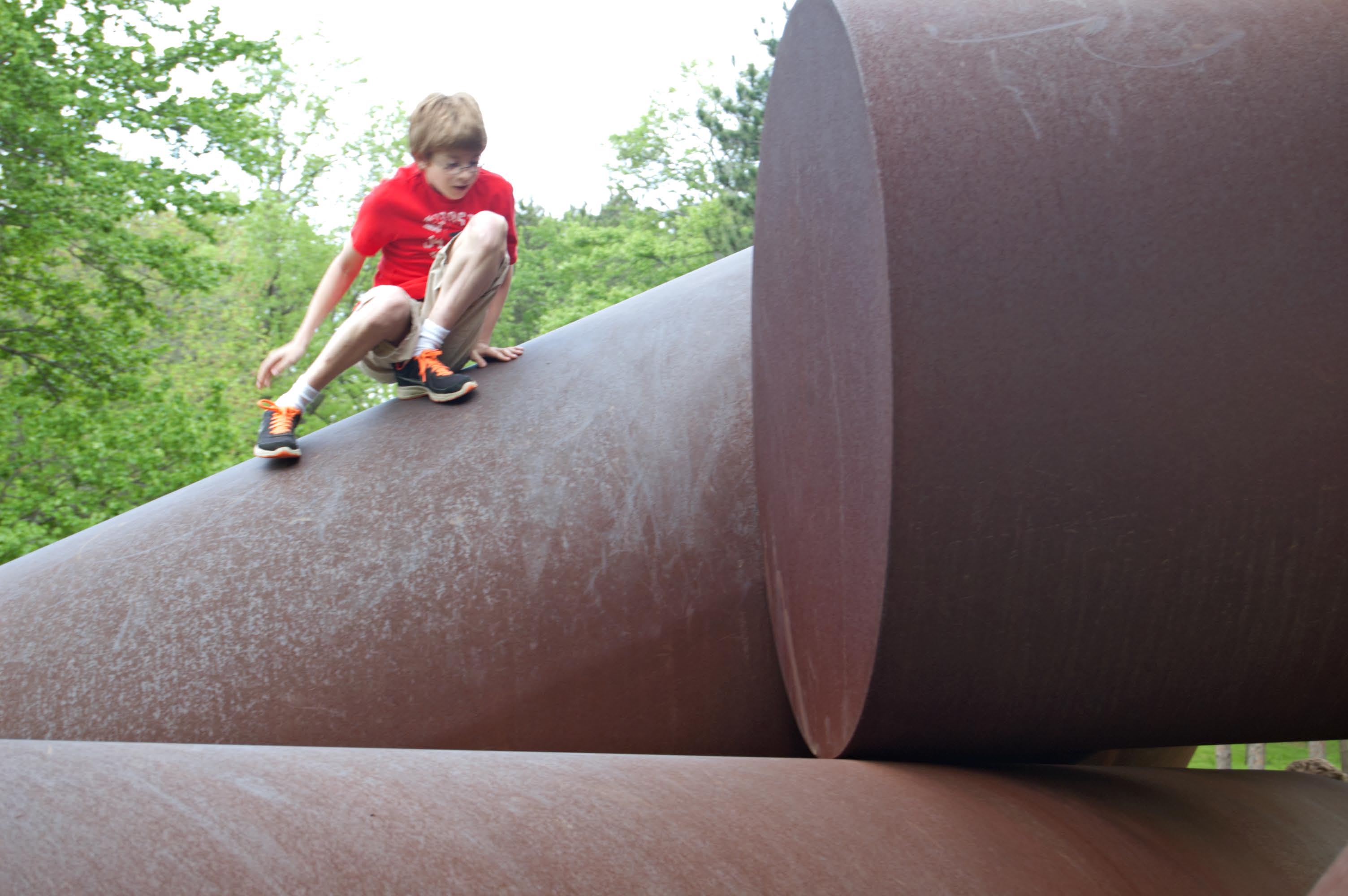Last Sunday, we took a trip to Storm King, an outdoor sculpture park about 40 minutes north of here. The kids frolicked through the fields and climbed over the sculptures. A band played in one of the meadows, and hipsters from Brooklyn in their Zip Cars sat on the field drinking Brooklyn Lager. It was splendid.
