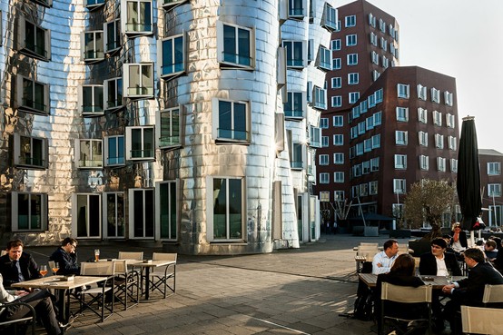 UPDATE: Christiana wins. It's Düsseldorf, Germany. This is one of Frank Gehry's office buildings. From the article in this Sunday's NYT Travel Magazine.