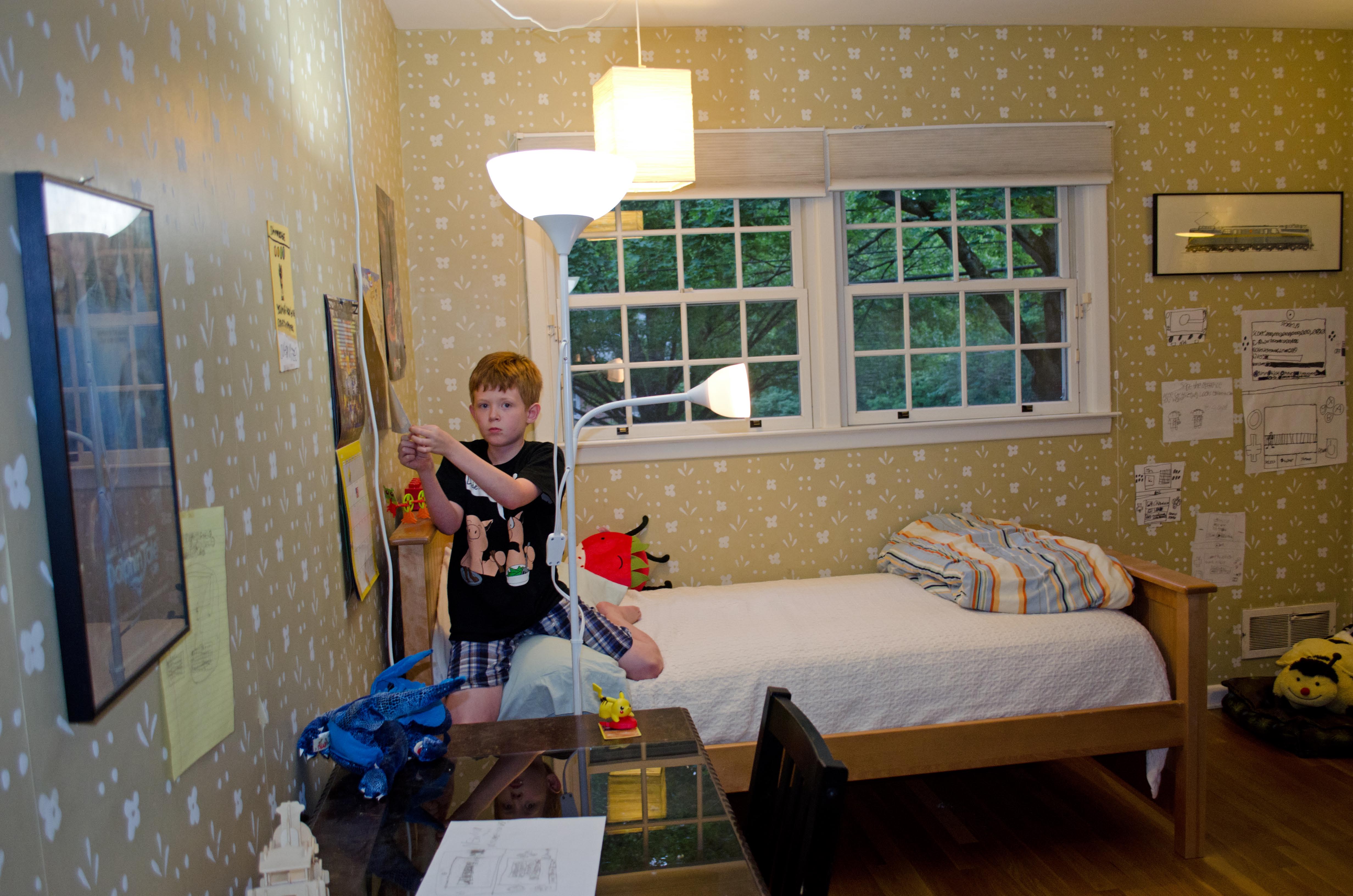 “I decided that he needs space to tape up his stuff. An area that he can totally trash. Waaaah!”