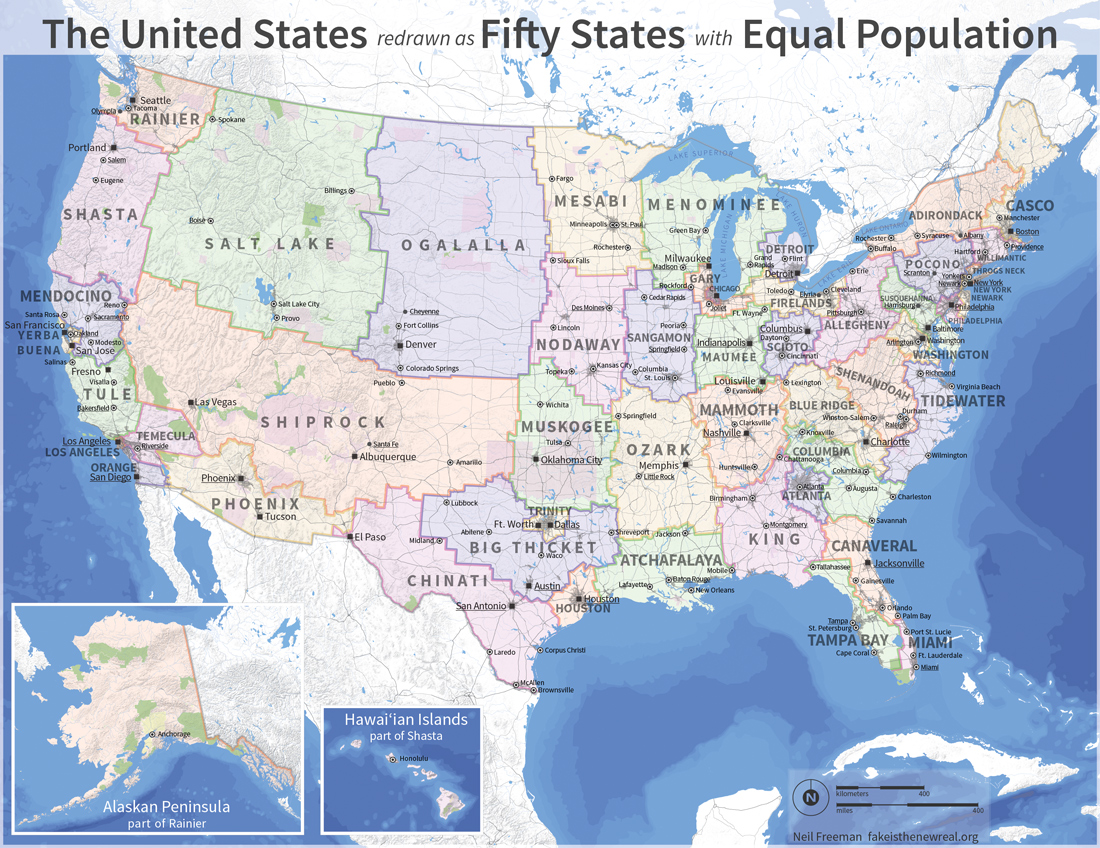 Michael Barone notes that this arrangement would significantly help the Republicans, and not because of the details of the state lines, but because the Democratic vote generally is more tightly clustered.