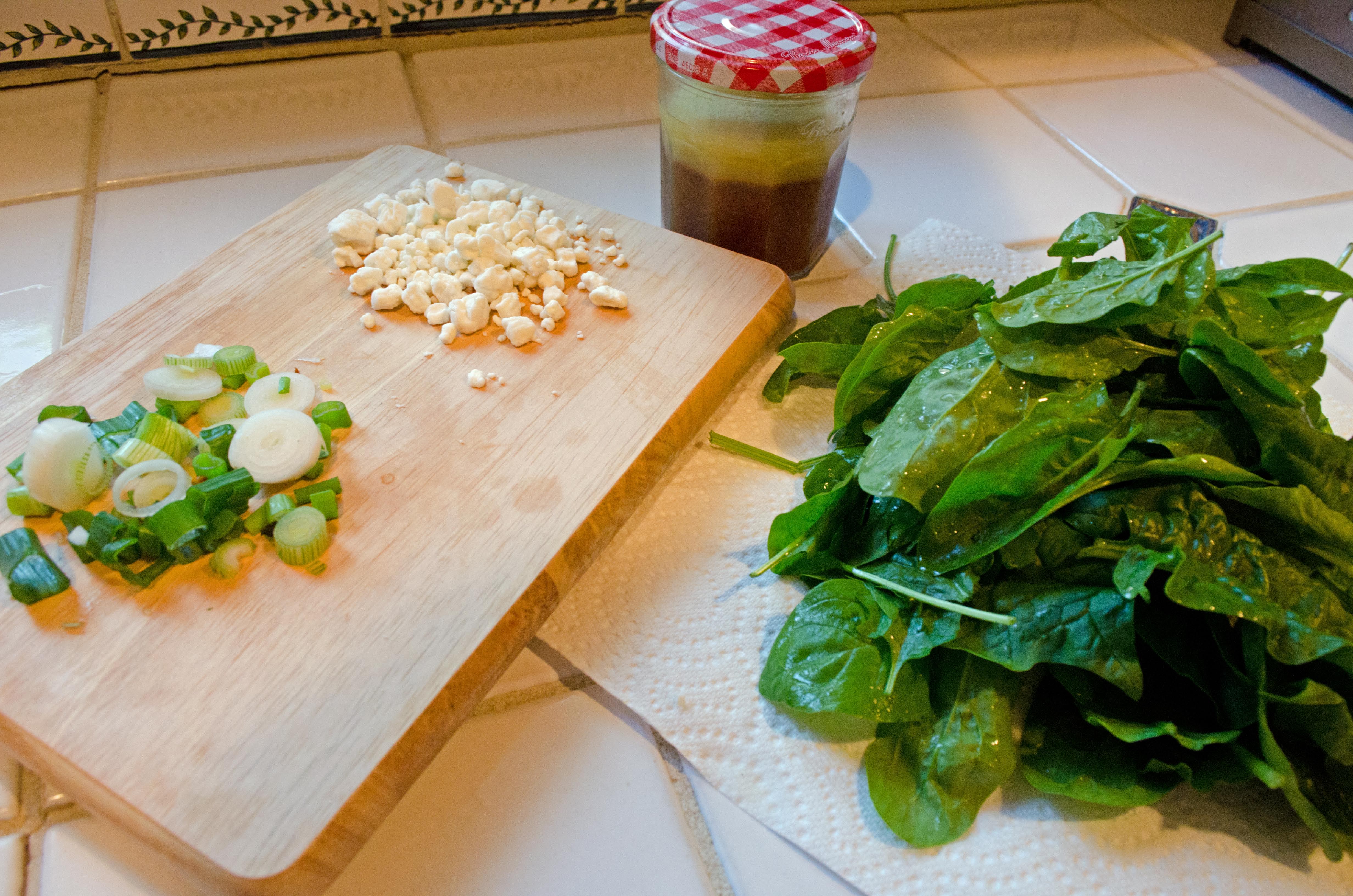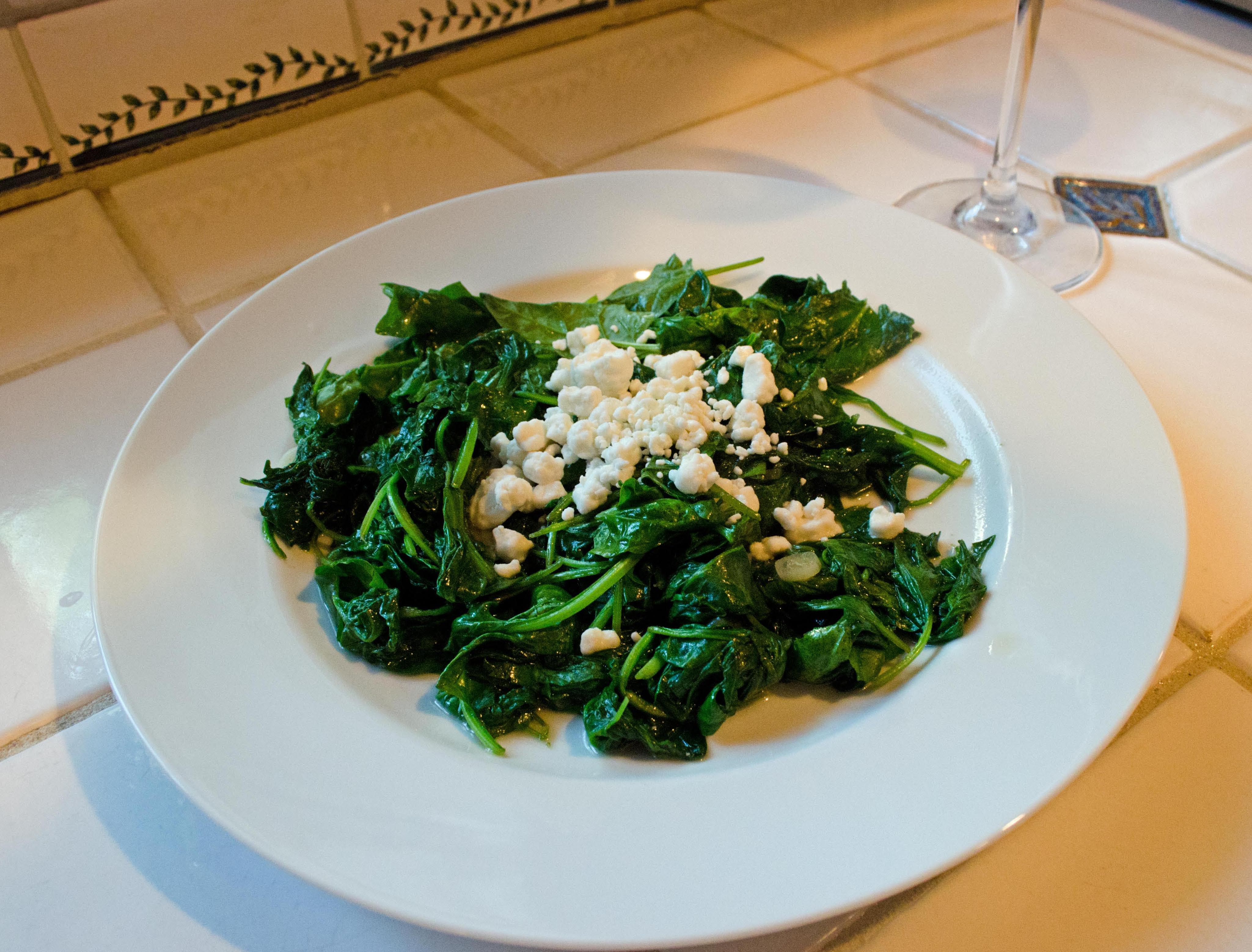 I quickly wilted the spinach (also from the CSA) and topped it with crumbled goat cheese.
