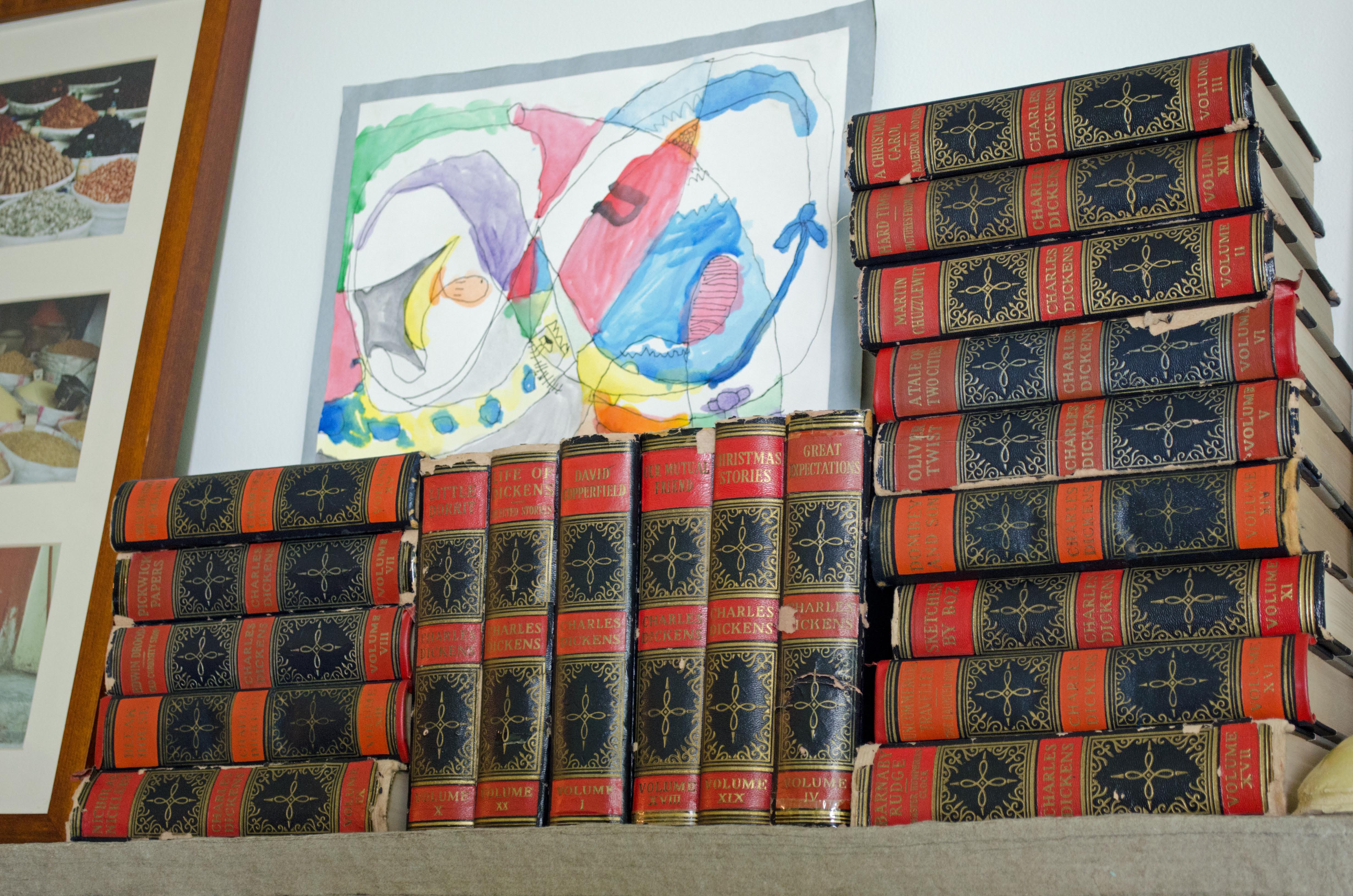 Dickens and Drawings August 1, 2013 ~ Laura The latest stack of stuff on my fireplace mantle includes a set of Dickens books from the 1930’s, which I picked up at an estate sale for pratically nothing, and artwork by Ian. Share this:TweetMore Click to share on Reddit (Opens in new window) Reddit Click to email a link to a friend (Opens in new window) Email Like Loading... Related Published by Laura View all posts by Laura