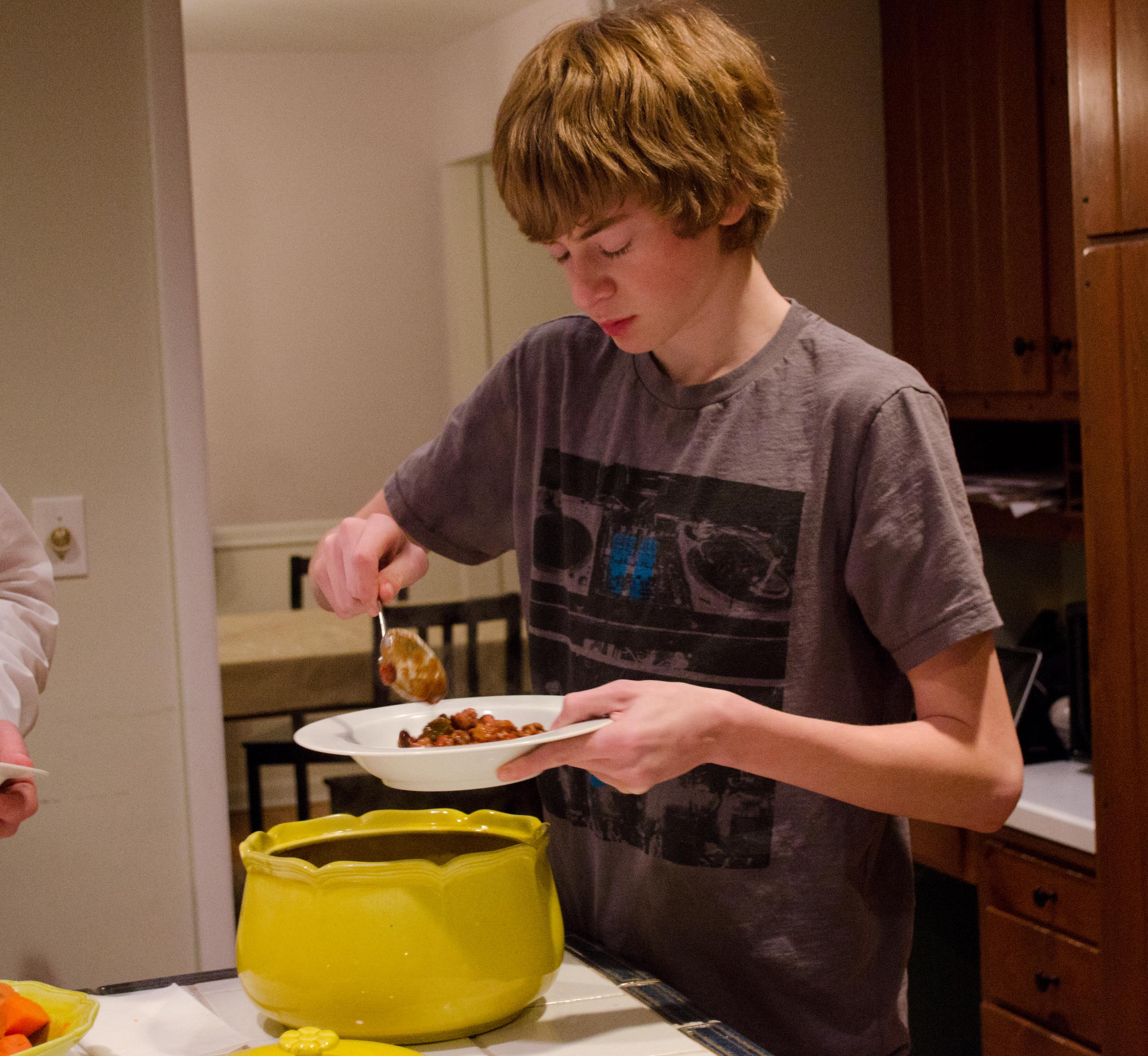 We don’t have any teenage boys of our own, but it certainly is a pleasure when one comes for dinner. The cook really feels appreciated, and there are no leftovers!