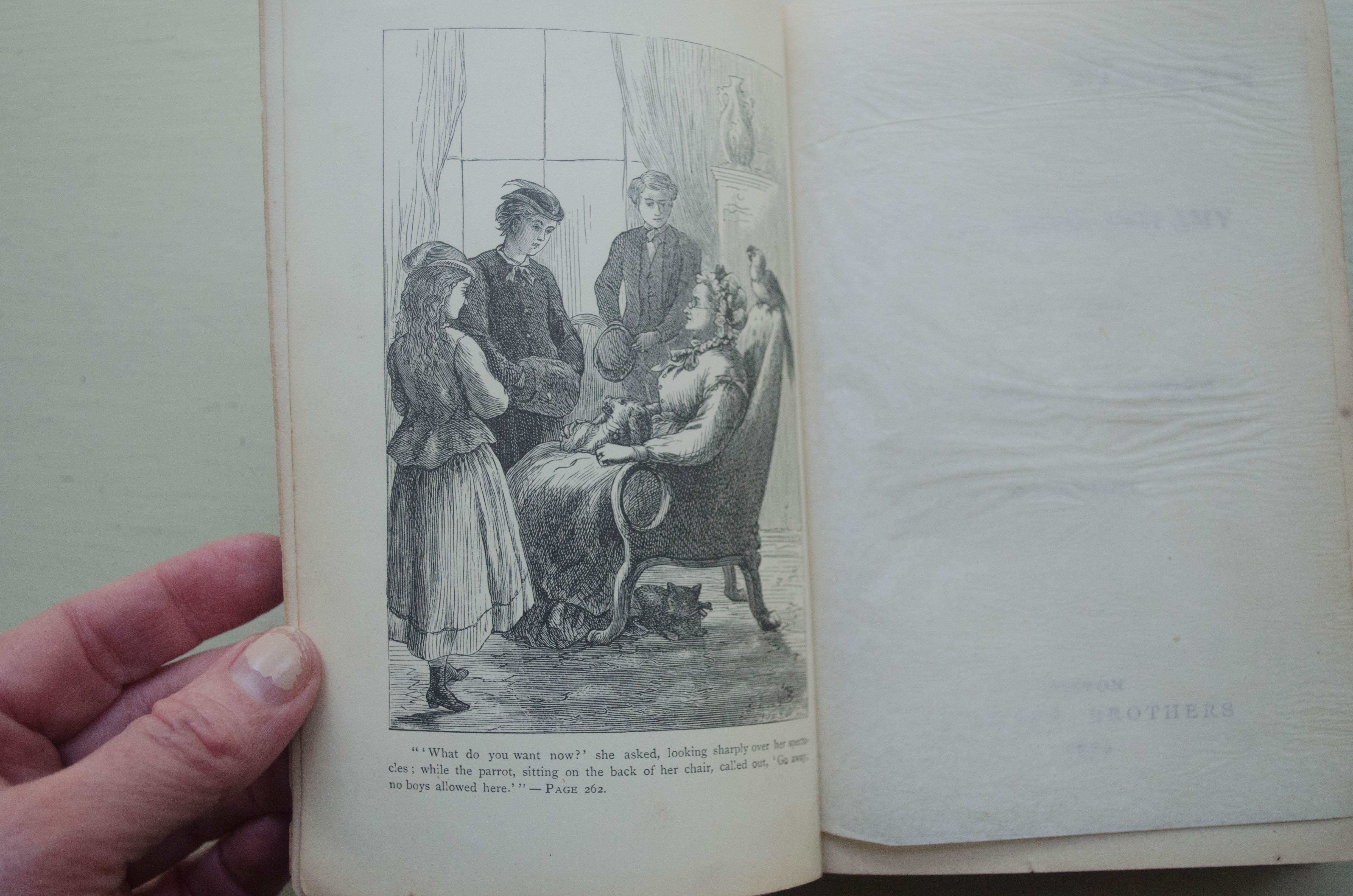 About twenty five years ago, I was visiting a friend who lived in a small town outside of Boston. One day, we roamed through an antique shop, and I rummaged through a basket of old books under a table. I picked up this old copy of Little Women, which is one of my favorite books, and bought it for 25 cents. I promptly put it away in a box and forgot about it.