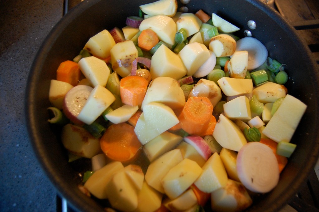 We eat a lot of vegetables. At Sunday’s farmer’s market, Steve and I load up on at least four bags of vegetables. It’s fairly random. I grab whatever looks happy that day — leeks, cabbage, lettuce, corn, beets, radishes — and then figure out recipes later. The Sunday before Thanksgiving was the last day of the market until May, so I loaded up on squash, potatoes, carrots, and onions — items that would last in the bottom shelf of the pantry for a couple of months.