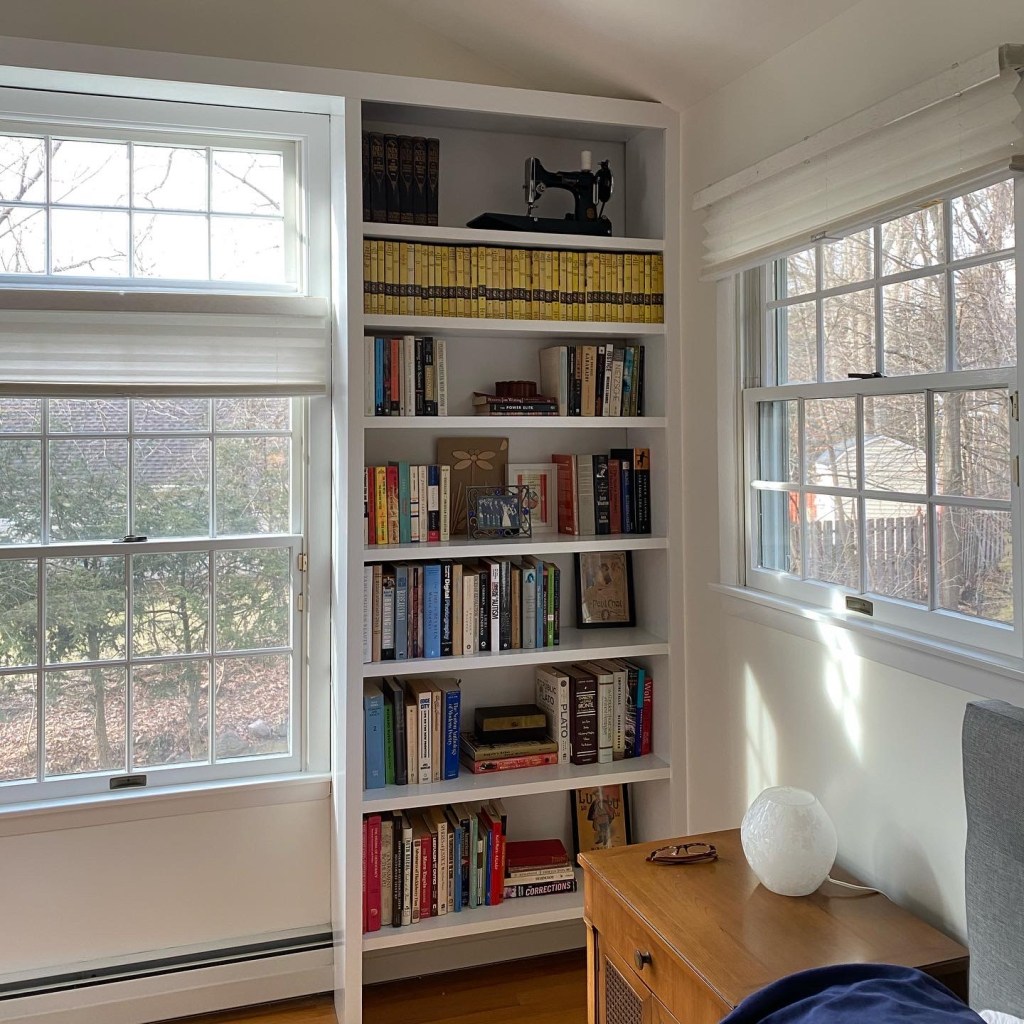 I am very, very jealous of those built in bookcases. I have two tall ones from Ikea (the more expensive model), one that’s holding together well and the other that I must have just made some small mistake on and have tried repeatedly to fix over the last few years, including taking it apart entirely and reassembling. It looks okay but I know how precarious it is, which is not something you want in an enormous bookshelf.