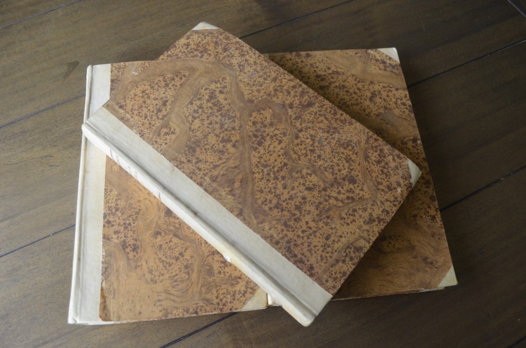 Turns out that four of that stack are from 1821 and are printed on vellum paper. Written in Italian, they are history books about America with some amazing maps in the back.