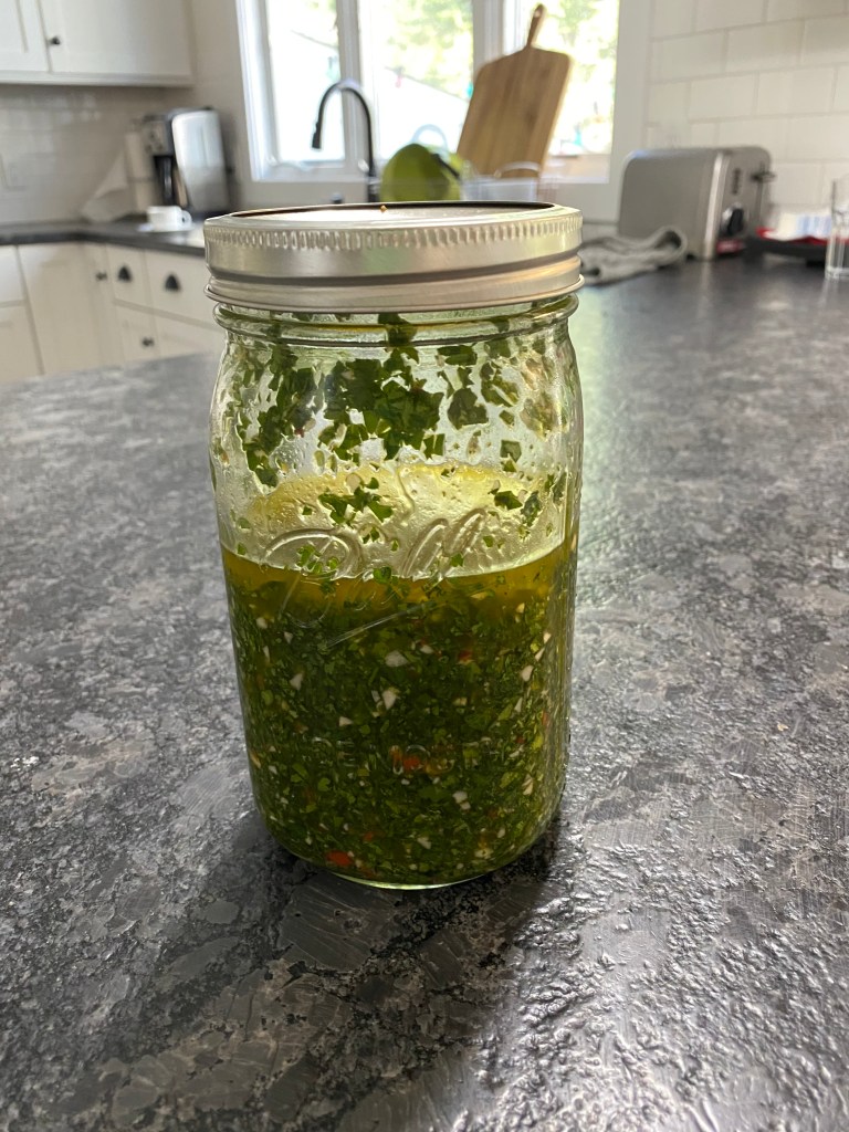Between cleaning off the back patio to prepare for dinners outside, making chimichurri sauce from herbs in the garden that never quite died over the winter, and making dinner, the entire day was devoted to our new lifestyle.