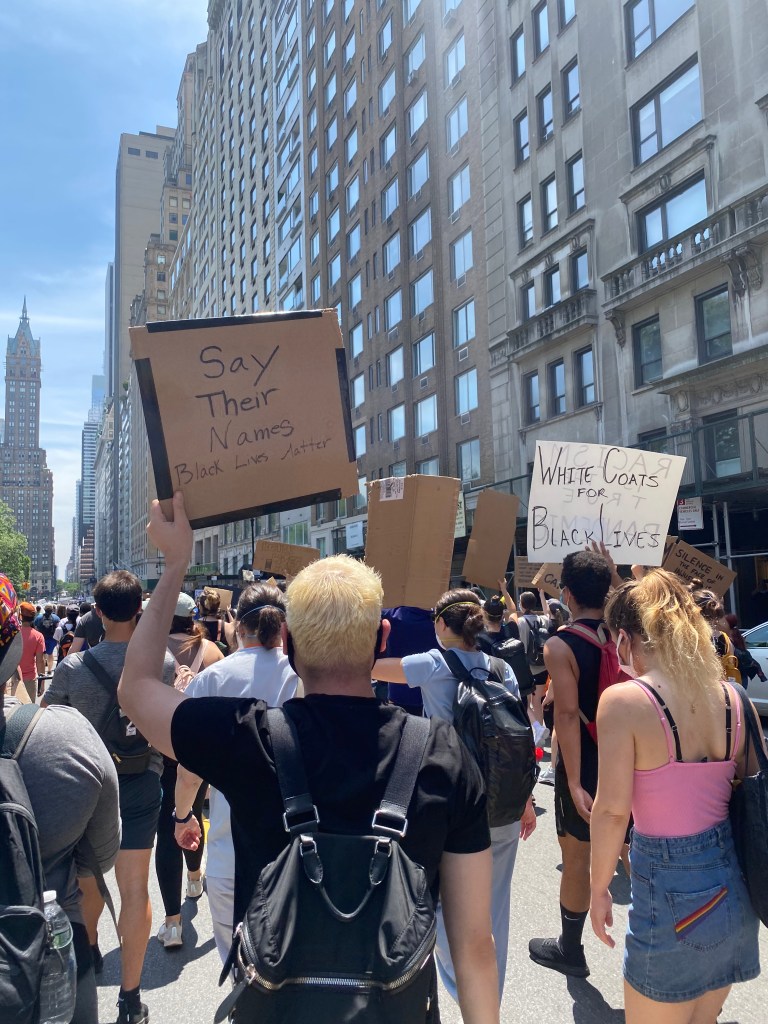 On Saturday morning, we all went into New York City to attend a peaceful protest. We face some obvious problems in society – social, political, and economic inequities. Our criminal justice system is in need of reform. I wanted to show my support for those who champion those issues and for all peaceful protests. I also wanted to introduce my kids to direct political participation.
