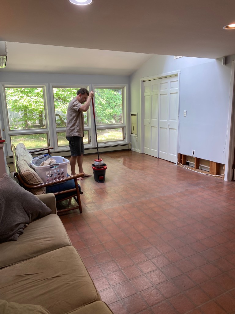 “The water remediation guys just found asbestos tiles under the lineoleum. So specialized workers are going to have to come here to pull all that up. And Jonah wandered downstairs to say that Rutgers announced that all of his classes were going to be online this fall, but there won’t be a discount in tuition.”