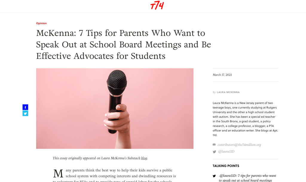 Thanks to Yahoo, NJ Education Report and The 74 for reprinting my tips for speaking at school board meetings.