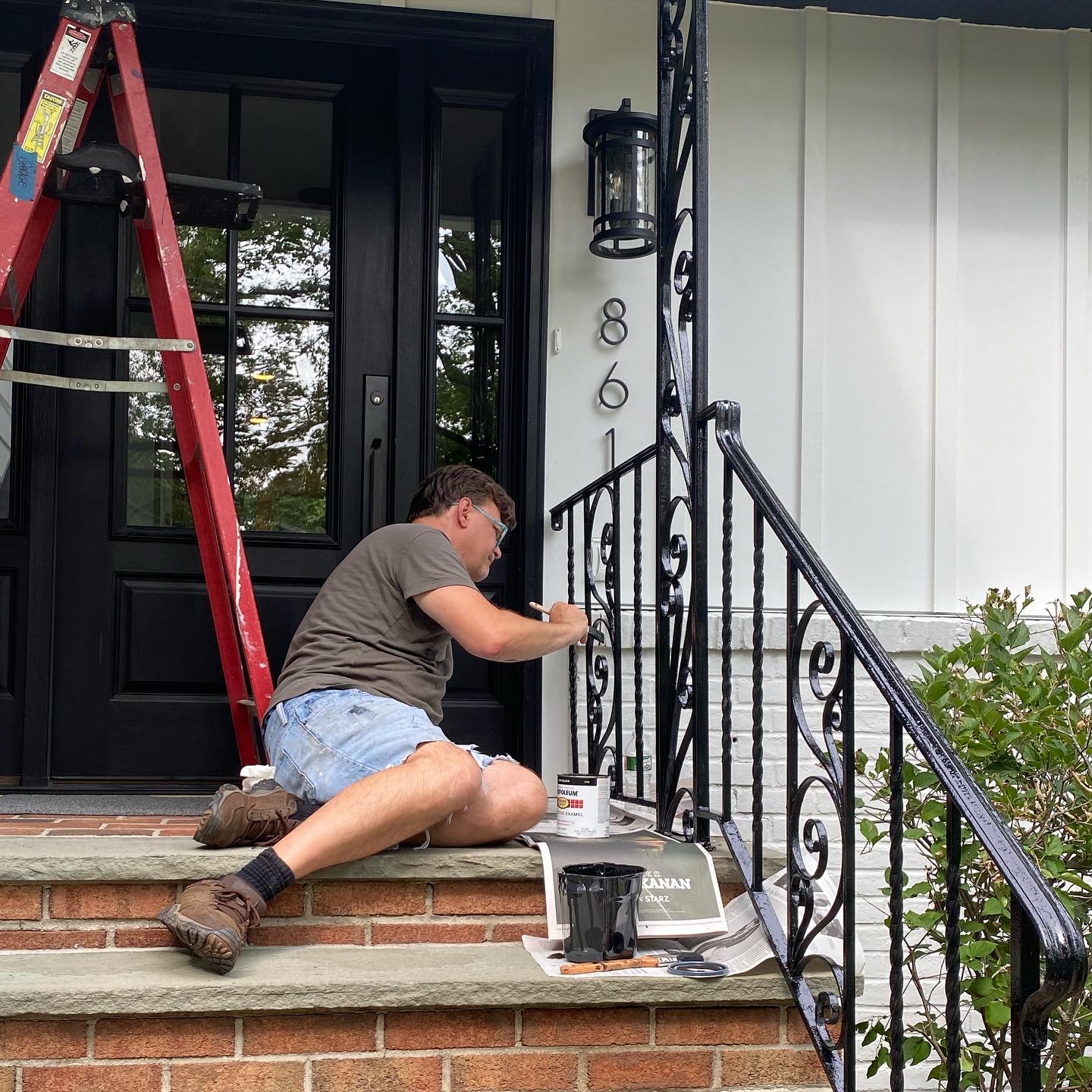Picture: We are finishing off the loose ends on our home project on own, because it’s impossible to find people willing to do small jobs. This weekend, we sanded and scraped off the 60 years paint from our iron railing, and then painted it with some nice shiny paint.