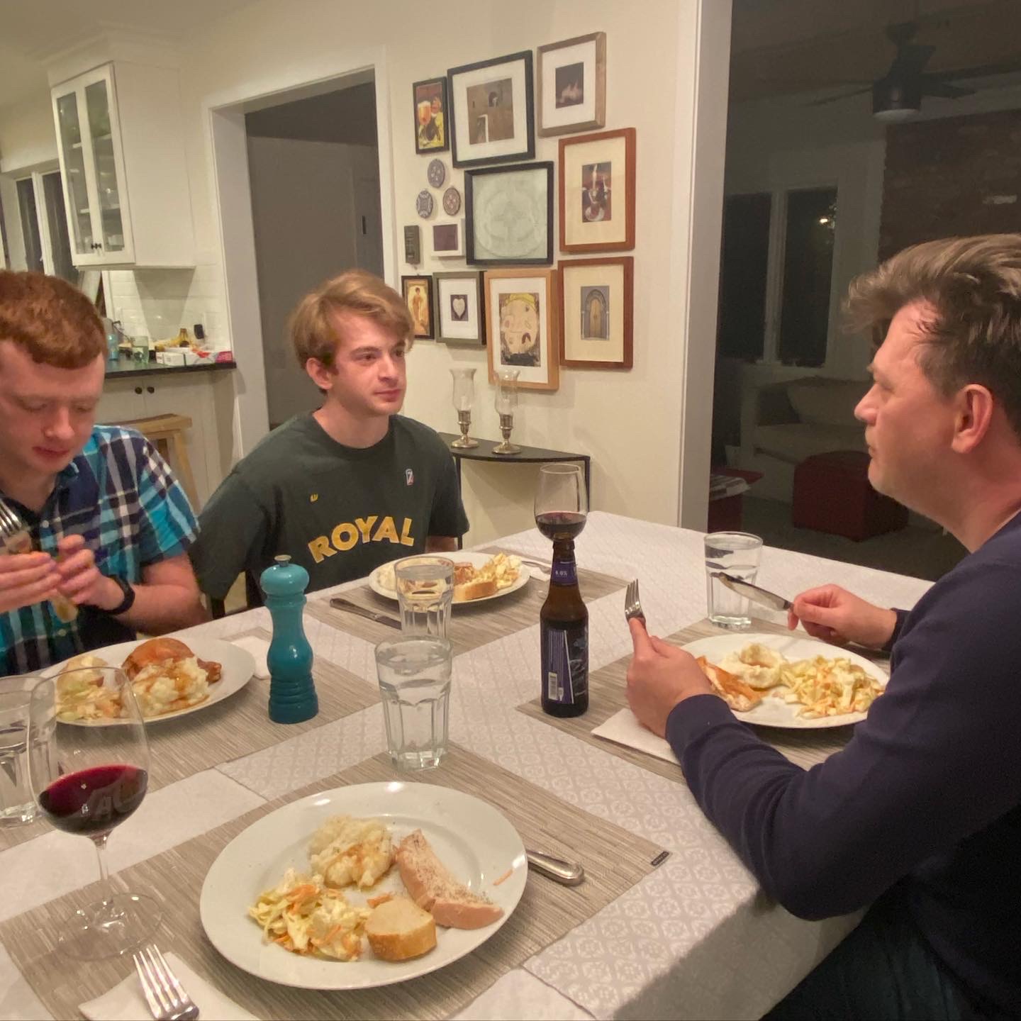 We went out with friends for dinner on Friday night, but the rest of the weekend was for family. Jonah came home from college, so I made a nice dinner for him – roasted chicken, mashed potatoes, and coleslaw. On Sunday, we had a baptism and family party in the afternoon. Steve and Ian and I were too blobby after all that food, so we stayed home to watch the football game. Pictures below (Click on one to start a slide show.)