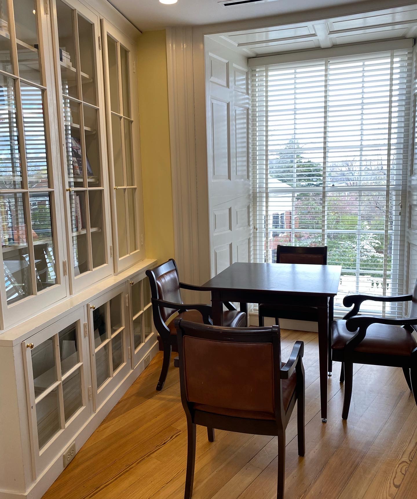 We learned a lot more about Jefferson the next morning when we walked around the Rotunda and the central campus. The old campus is fantastic and has adorable one room dorm rooms for the honors students. The old dorm room have their own fireplaces and rockers. Walking down the outdoor corridor to the bathroom in a bathrobe is a badge of pride for those honors students.