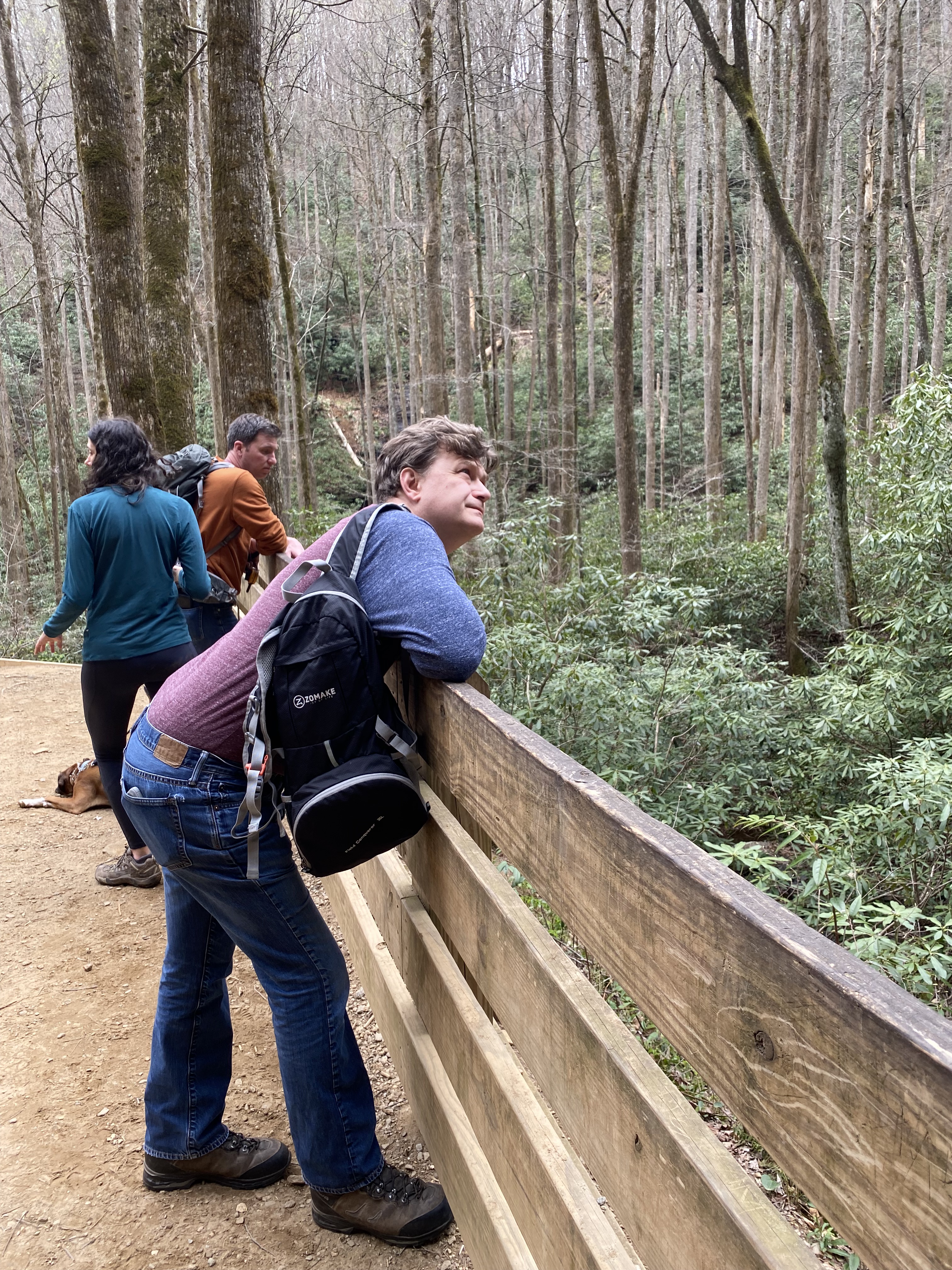 Last week, we spent three days in an Airbnb cabin in the mountains of Asheville, NC with Steve’s folks and Ian. To accommodate multi-generational and diverse group with differing neurological and mobility abilities, we decided that this wood-lined cabin with a common area was a better bet than two hotel rooms. This way, we would have common areas for chatting and eating. It worked out.