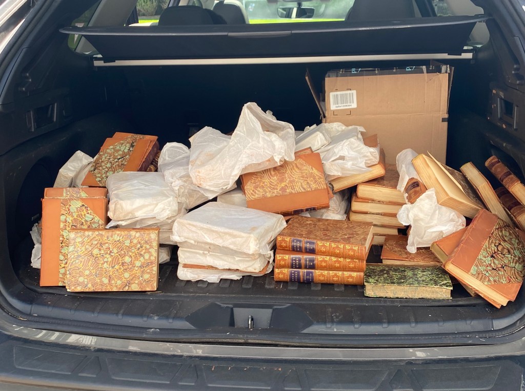 PICTURE: Bought a set of about 100 leather bound books this weekend. Now, I’m conditioning all that leather. Will more pictures later.