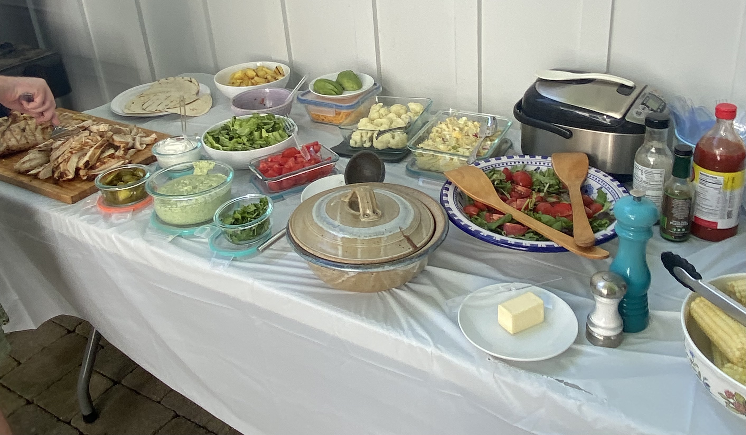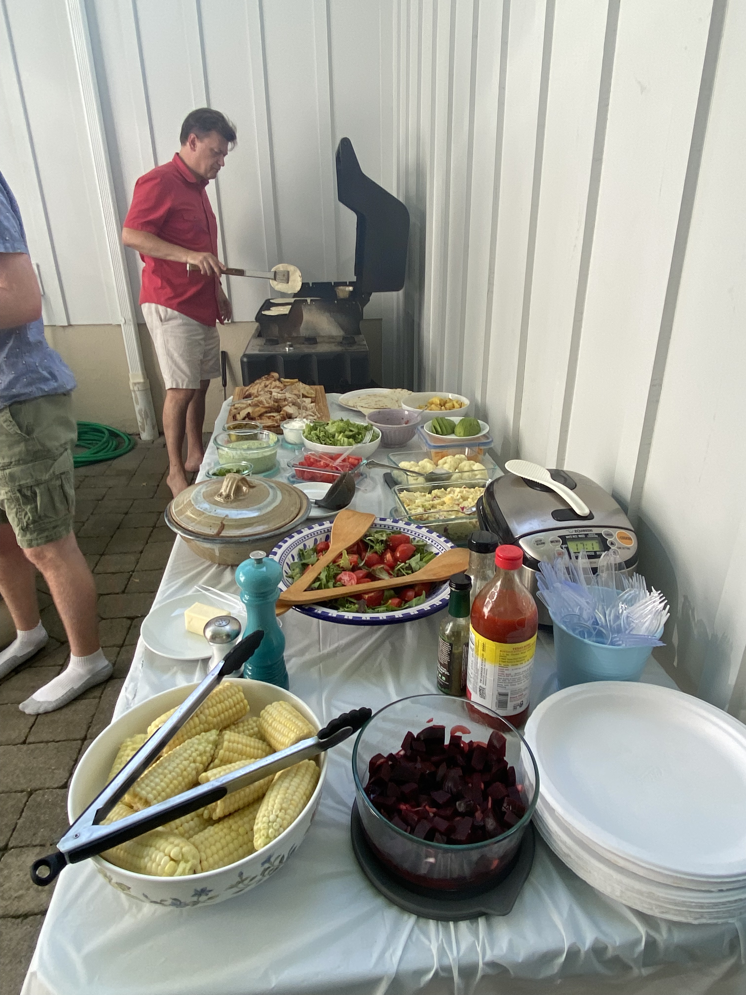 My July 4th began at 6am, when Steve shook me awake. My local 5K race started at 8am before the day got too hot. Did it. Best time of the year, but still nothing wonderful. 29.33 or something. Then home for a quick shower. Ian likes traditions, so we had to go watch the town parade. We had good seats at the local pub; mimosas make parades a LOT more fun. Then back home to prep for dinner for 12. Fed 12. My dad made the kids read the Declaration of Independence. I drooped at that point, but Steve and Ian and my folks kept going. They took folding chairs into town to watch fireworks.
