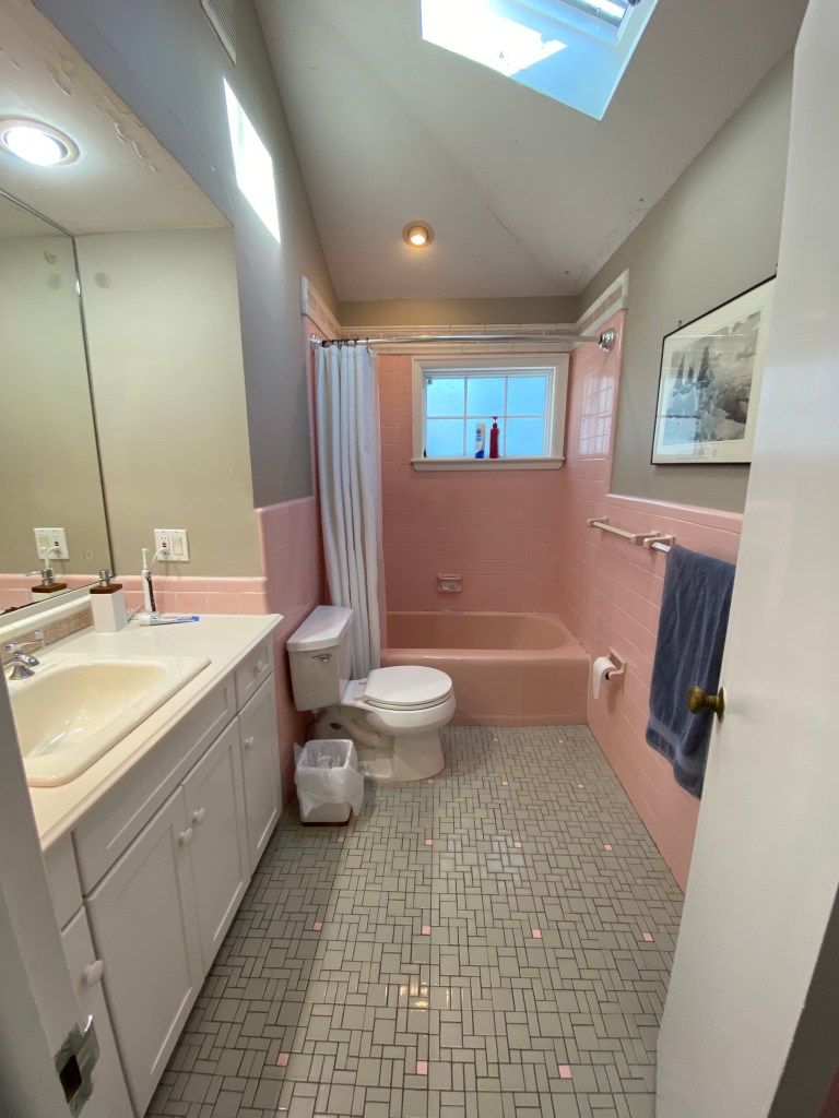 Ah yes, the joy. We are already putting it off after having fixed the plumbing under the sinks after leaks (and subsequent minor damage to the cabinetry, which is ok with us but would be a problem for sale), a spray nozzle that no longer works in the bathtub (which indeed would be possible to fix in a free standing tub), shower glass that doesn’t quite close properly, ceilings that need repainting, and curtains instead of better window planning (the bath was built when the house next door was a 1 story and the windows did not need to be closed and had views).