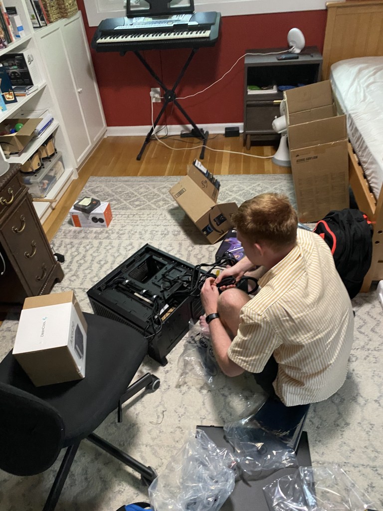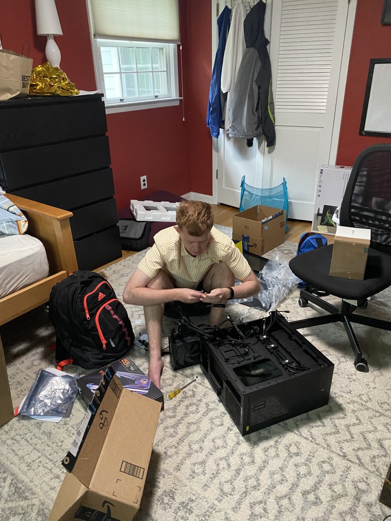 For the past couple of weeks, Ian has been using his birthday gifts — Amazon gift cards — to buy computer parts. Yesterday, Steve and Ian went to the super geeky computer parts company to get the last couple of components. Then Ian spent five hours putting it together.