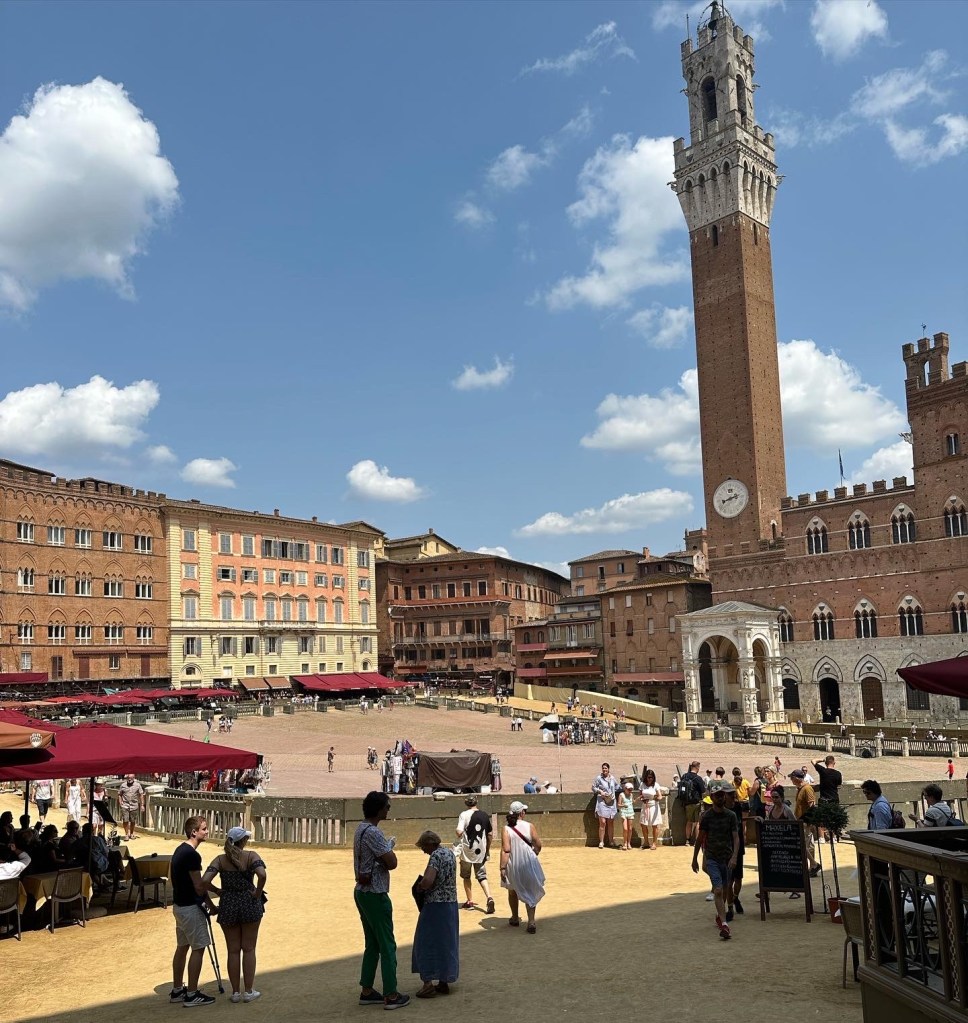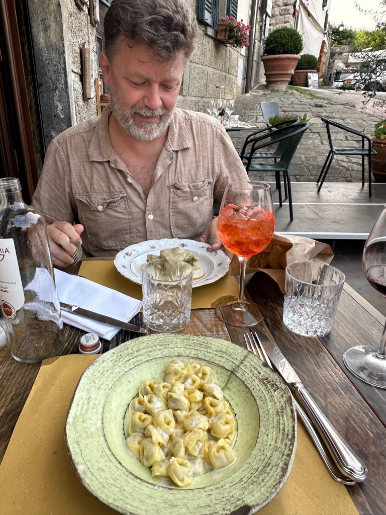 We drove a couple hours north with first a brief stop in Siena to visit one of my high school friends, who lives there. In her twenties, she met an Italian with a noble linage on a school trip to the country and married him. They now run a hotel in Sienna and manage various properties.
