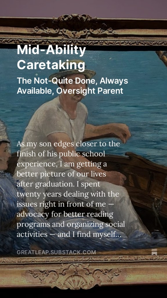 As my son edges closer to the finish of his public school experience, I am getting a better picture of our lives after graduation. I spent twenty years dealing with the issues right in front of me — advocacy for better reading programs and organizing social activities — and I find myself struggling to understand my future life.