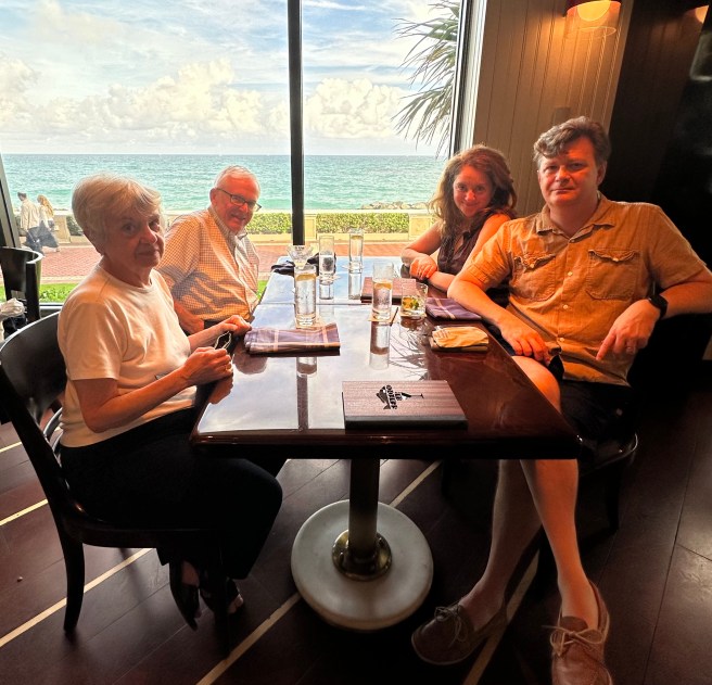 Last weekend, Steve and I flew down to West Palm Beach, Florida with my folks. My mom needed to see her sister, whose brain never recovered from years of Ambien usage. (Don’t take sleeping pills, folks! ) When we flew out of Newark, it was 27 degrees. In Florida, the temperature was in the mid-80s. It was a quick family trip with lots of responsibilities, but it was also great to catch up with my cousins and get out of the gloomy Jersey weather.