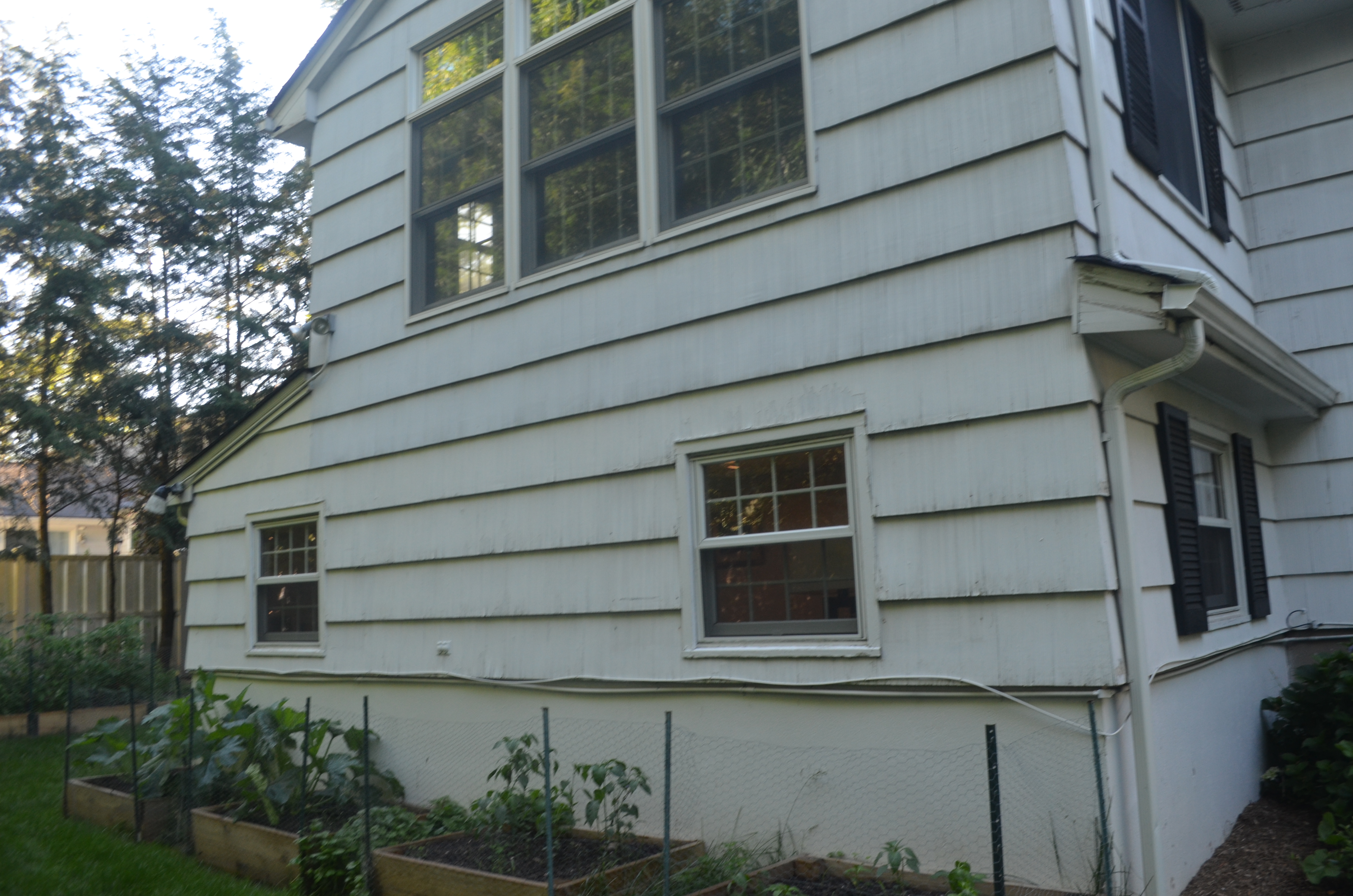 For the past two years, we have been saving and planning to completely rehab the exterior to the house. The paint was flaking off. There were holes in the house. Bees and woodpeckers were treating our house as a breakfast buffet. The soffits were rotting. There was a mysterious hole in one of the gutters that was backing water through our kitchen ceiling.