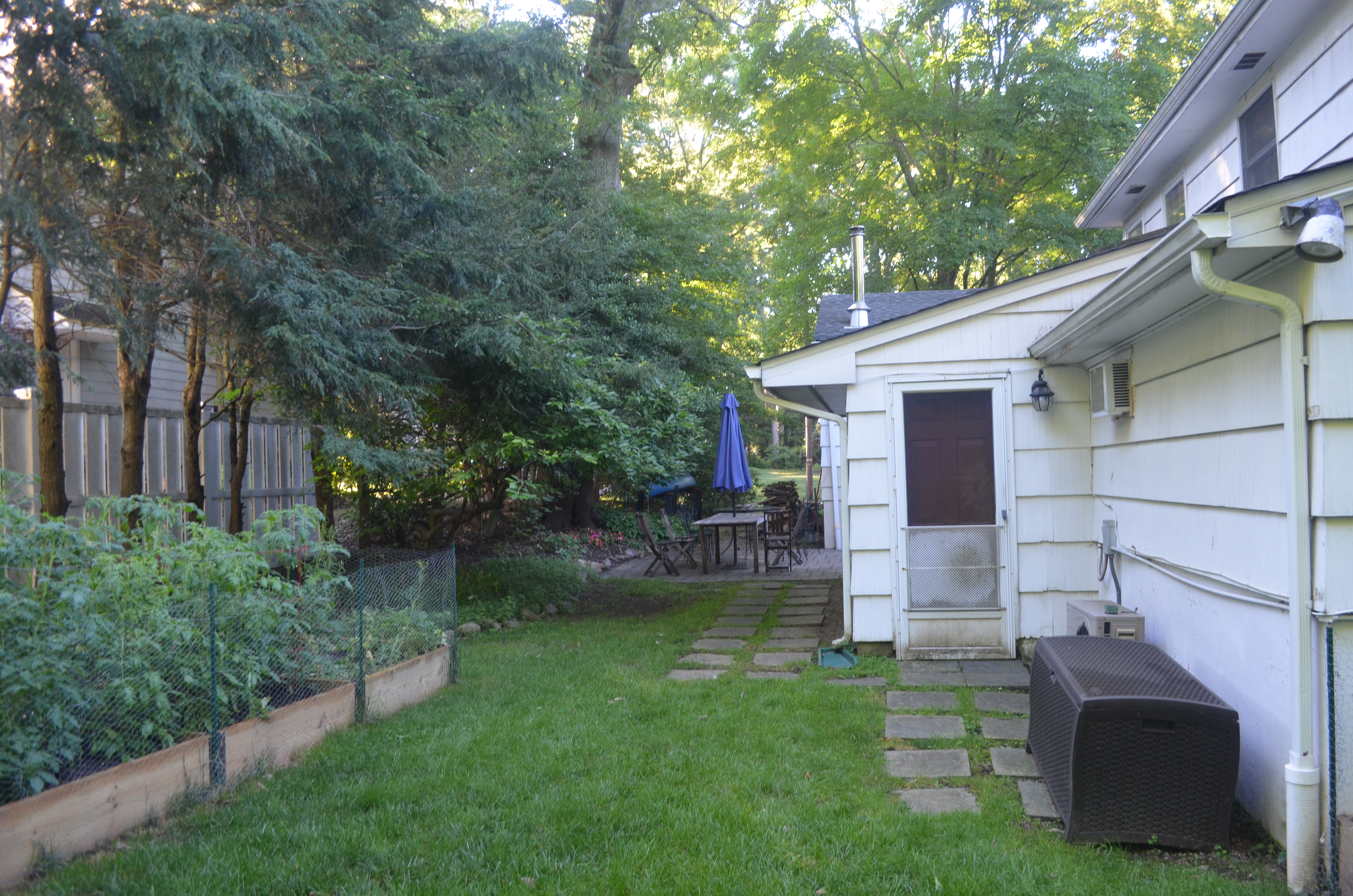 In the past ten years, we’ve done minor work outside. We pulled out some overgrown azaleas directly in front of the house. We had to do a lot of work trimming back and removing trees. Tree-work is frighteningly expensive. I hate it. We also had to do a little engineering in a corner of the yard, where a run-off stream would occasionally flood the yard. Another expensive, boring job.