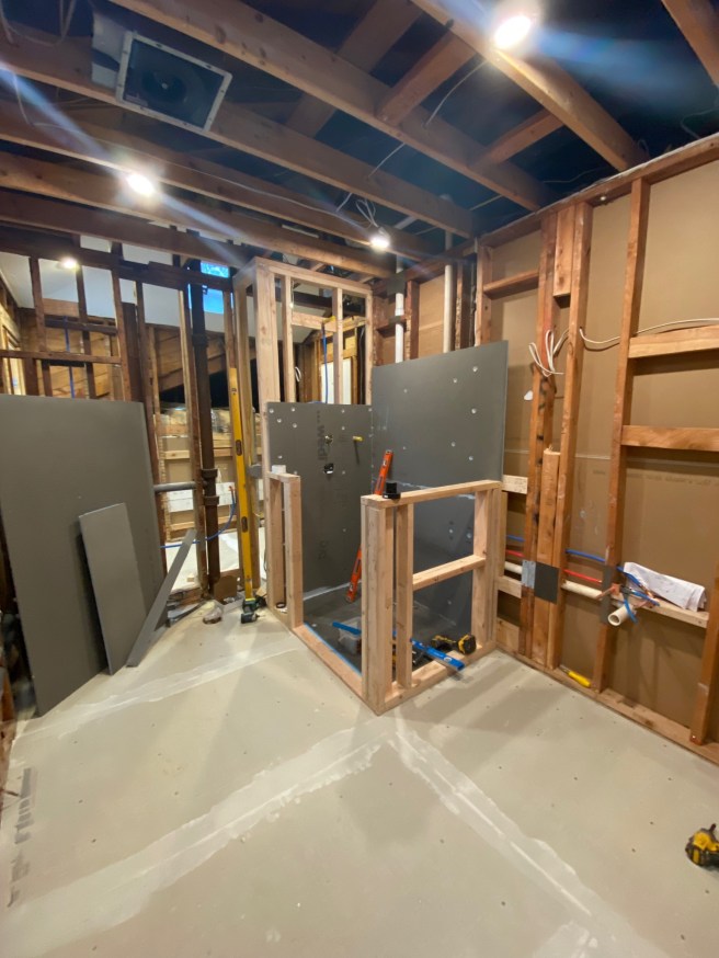 A backyard hot tub was on my bingo card. But you can’t always get what you want. Especially, when the rotting wood and shitty plumbing becomes a crisis that couldn’t be ignored. Later, when the floor was ripped up, we realized that we were in danger of the shower falling through the floor and into the basement.
